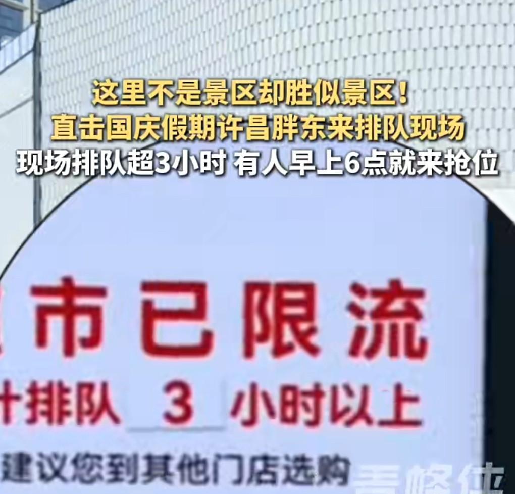 胖东来真的是个神奇的超市。 这人流量简直是和景区有一拼。 怪不得有人说,胖东来不是景区却胜似景区。 人从众太厉害。 10月3日报道,甚至有的排队超过三小时以上。 胖东来许昌店自己都感到头大了,要别人去其他胖东来超市。 排几个小时,那体验感肯定是不行的。#胖东来不是景区却胜似景区#