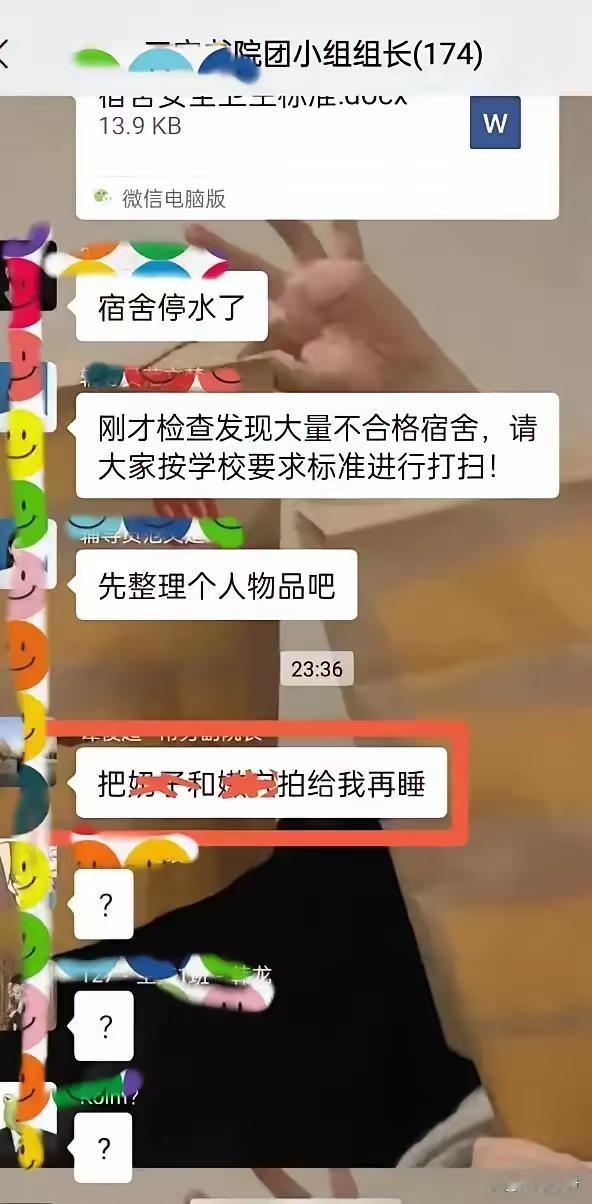 某院长在体院的女生宿舍群发了这样一条消息:把奶牛和嫩苗发给我再睡! 消息不胫而走