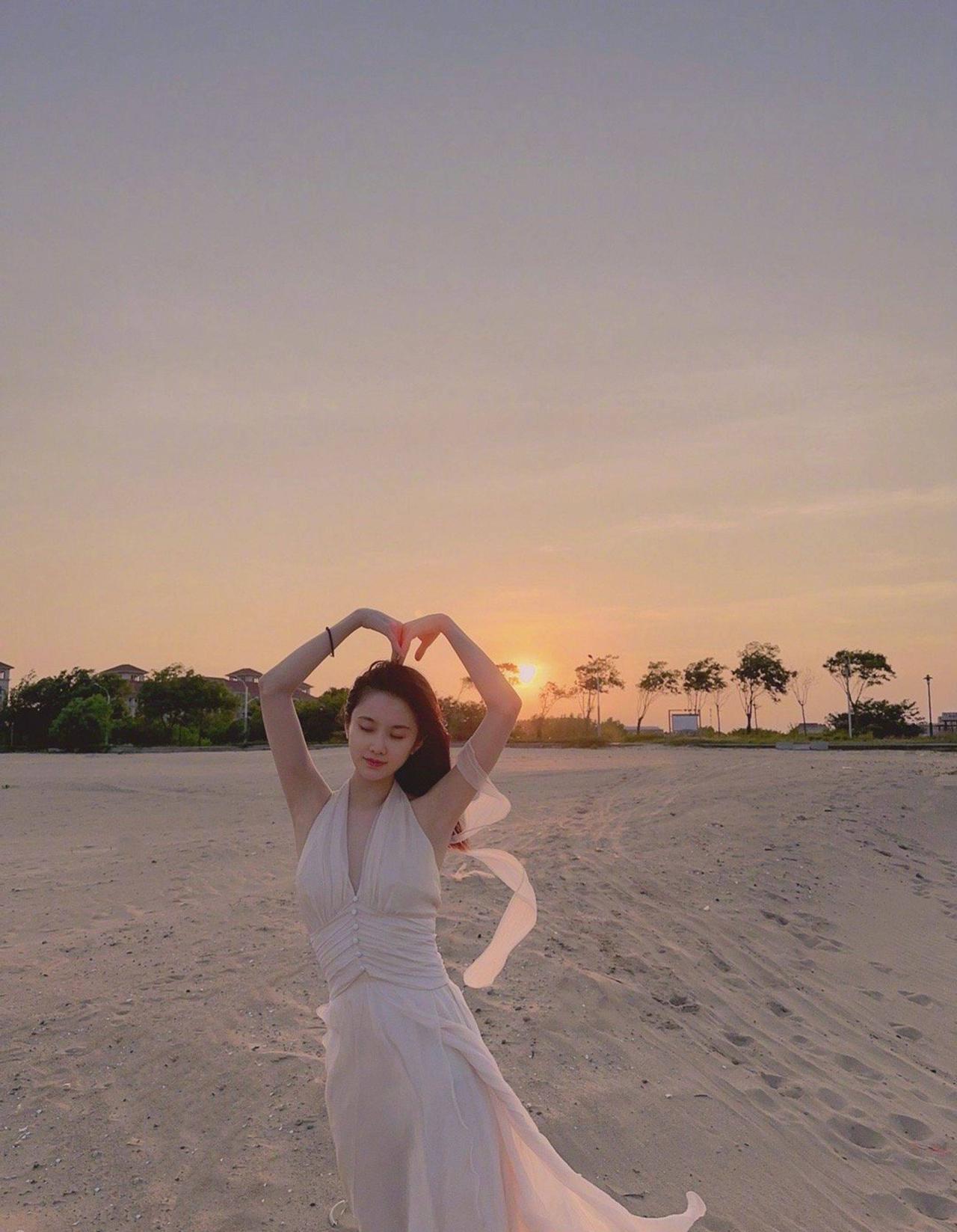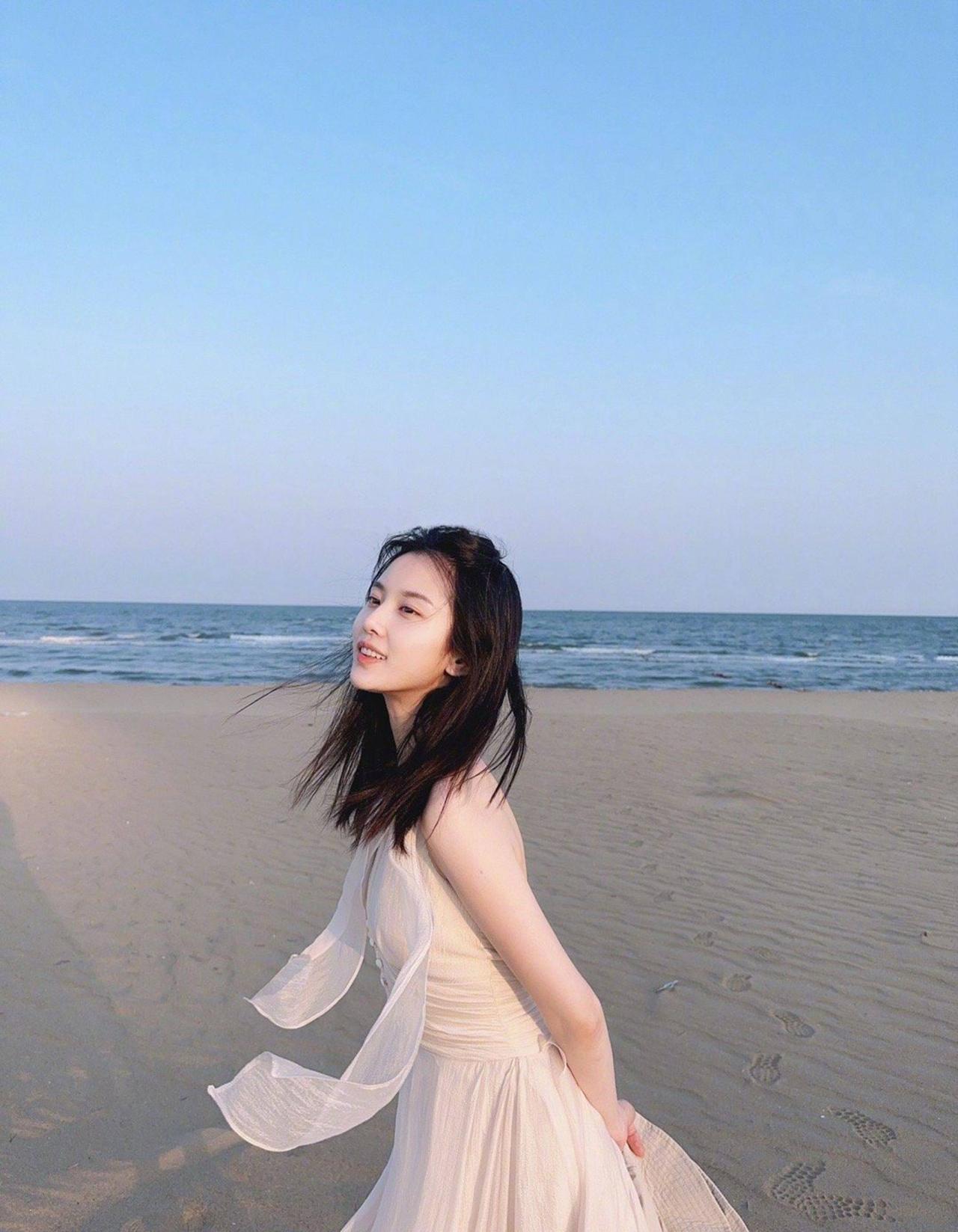 刘亦菲十七八岁时在海边游玩留下的一组照片,肚子上好多肉肉啊!