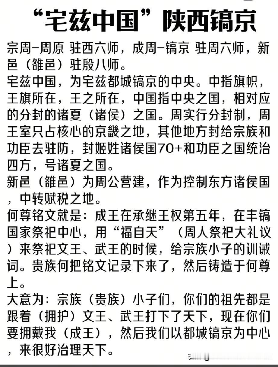 何尊赋是西工大为国铸剑的灵魂, 浮雕何尊象征着中国, 面对何尊隐姓埋名, 默默地为中国铸剑。 其中,何尊赋提到: 最早的中国就位于沣河两岸, 与西工大新校区遥望相邻。 正如历史教科书对何尊介绍的一样, 武王灭商,要在天下之中建都。 武王建立周朝, 定都镐京, 而丰镐两京就位于沣河两岸。 “宅兹中国”就是宅兹镐京。