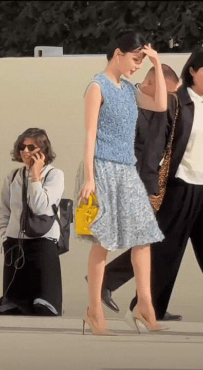 迪丽热巴看秀时鞋跟断掉了! 不知道迪奥公司怎样公关,代言人看秀的鞋子居然掉跟了