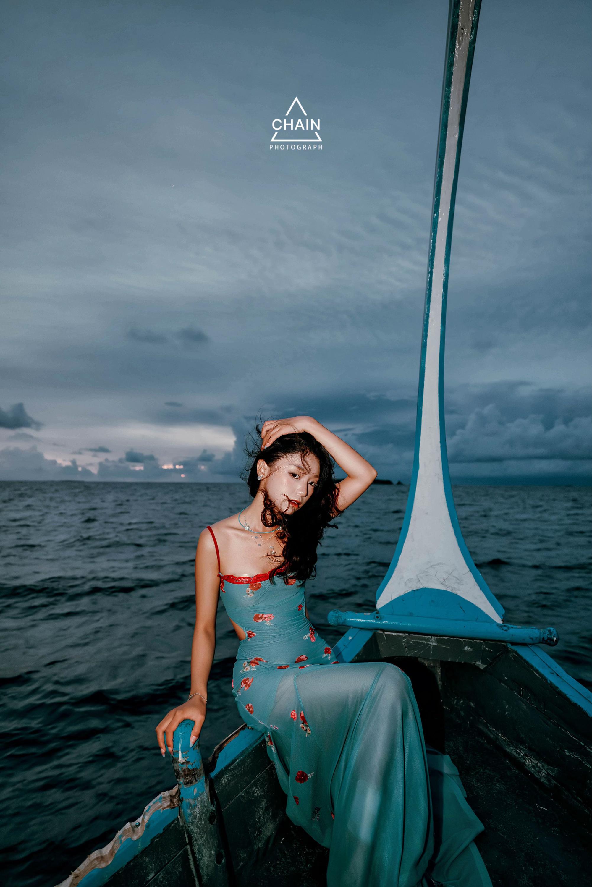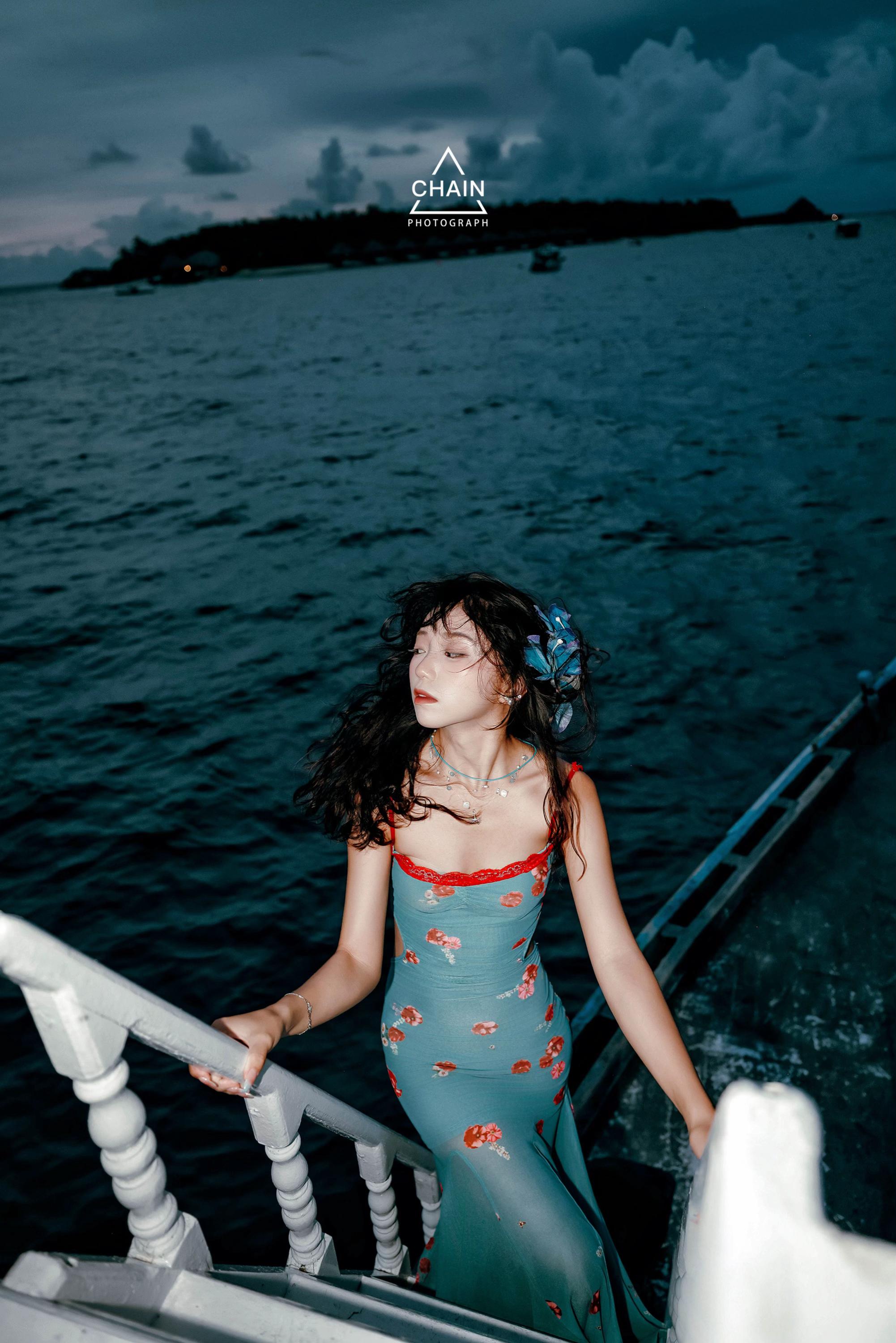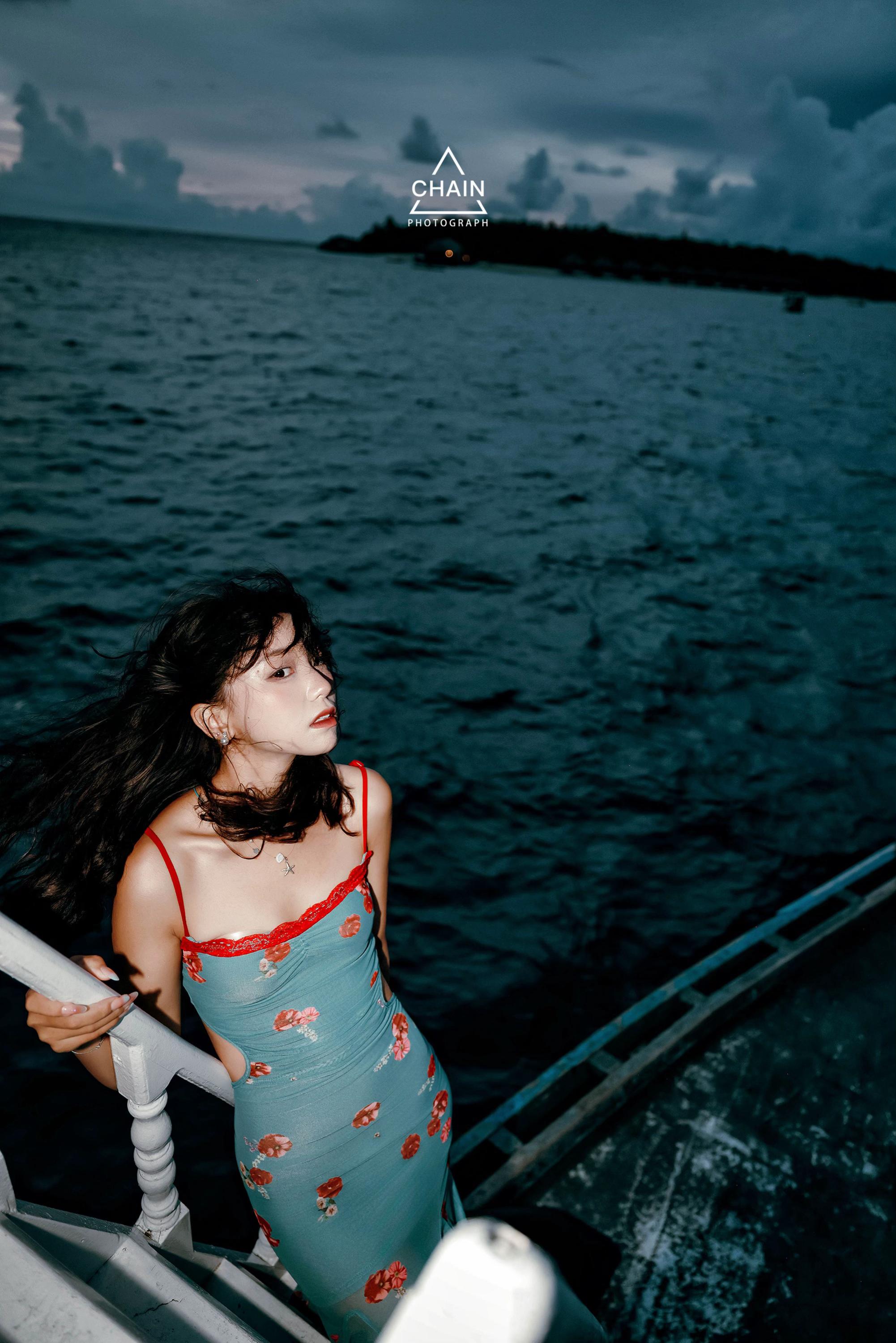 马尔代夫日落后起航。酒店日落巡航时拍的喝饮料吹海风成功出片