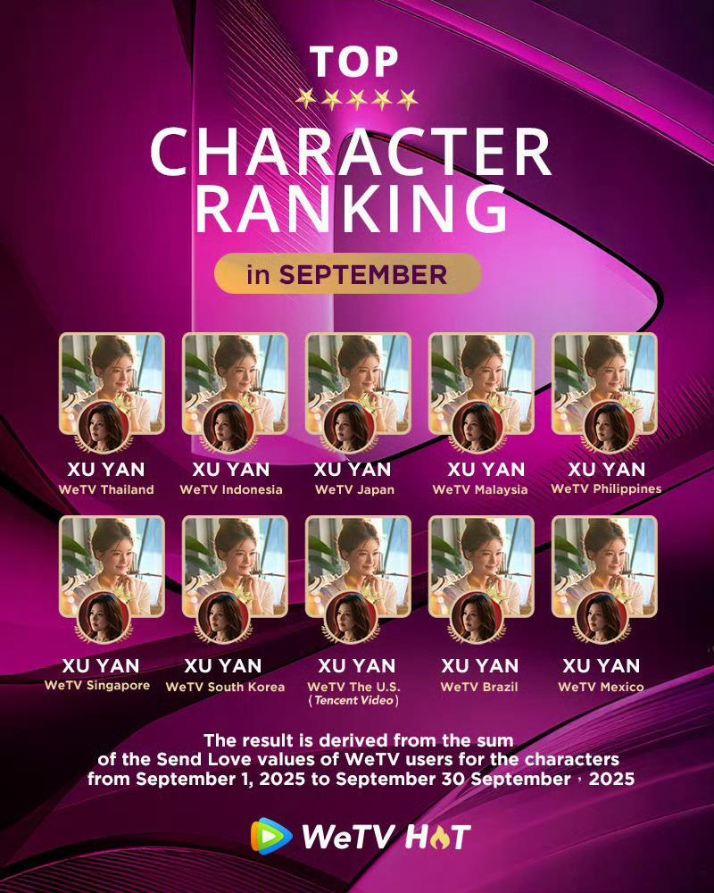 海鹅带着新鲜的WeTV九月角色热榜来啦!赵露思许妍在海外多个地区登上角色热度榜榜首!许我耀眼全球热播中,每晚北京时间18:00,海外锁定许我闪耀,妍你心动✨
