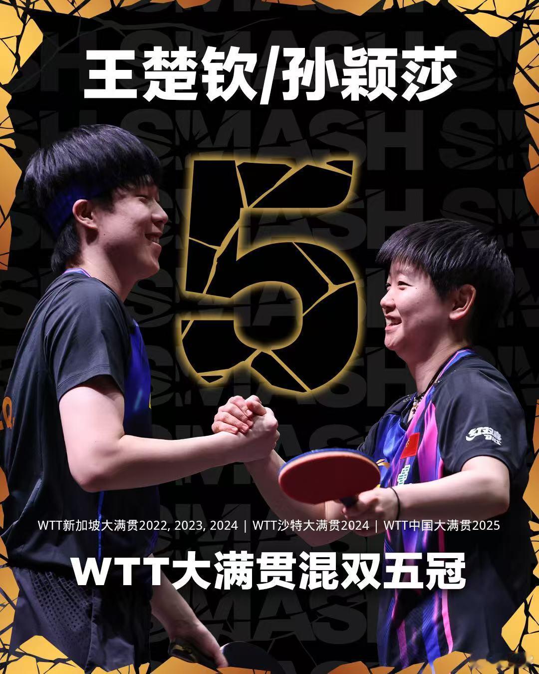 王楚钦孙颖莎大满贯混双第5冠恭喜孙颖莎王楚钦WTT大满贯混双五冠王!!