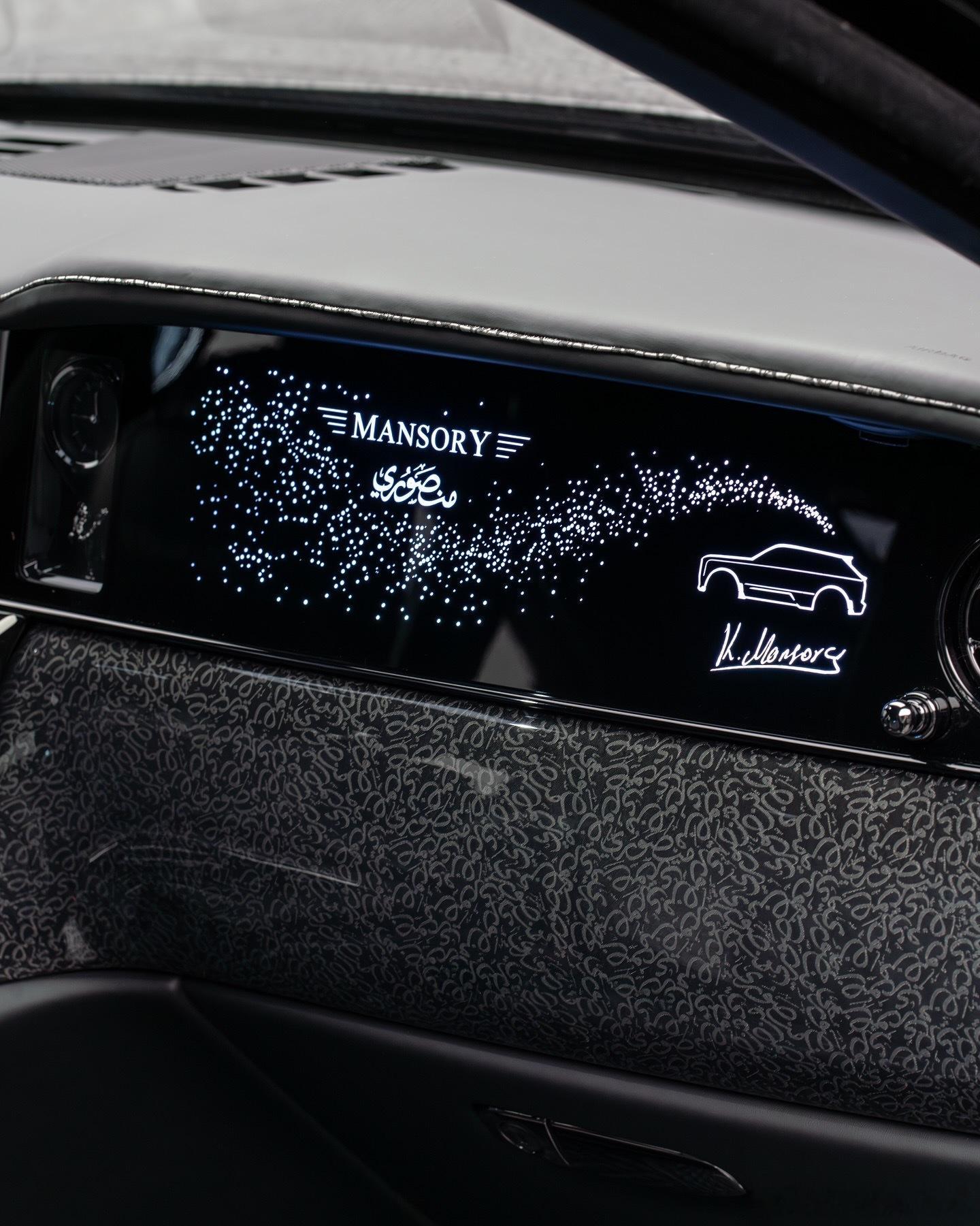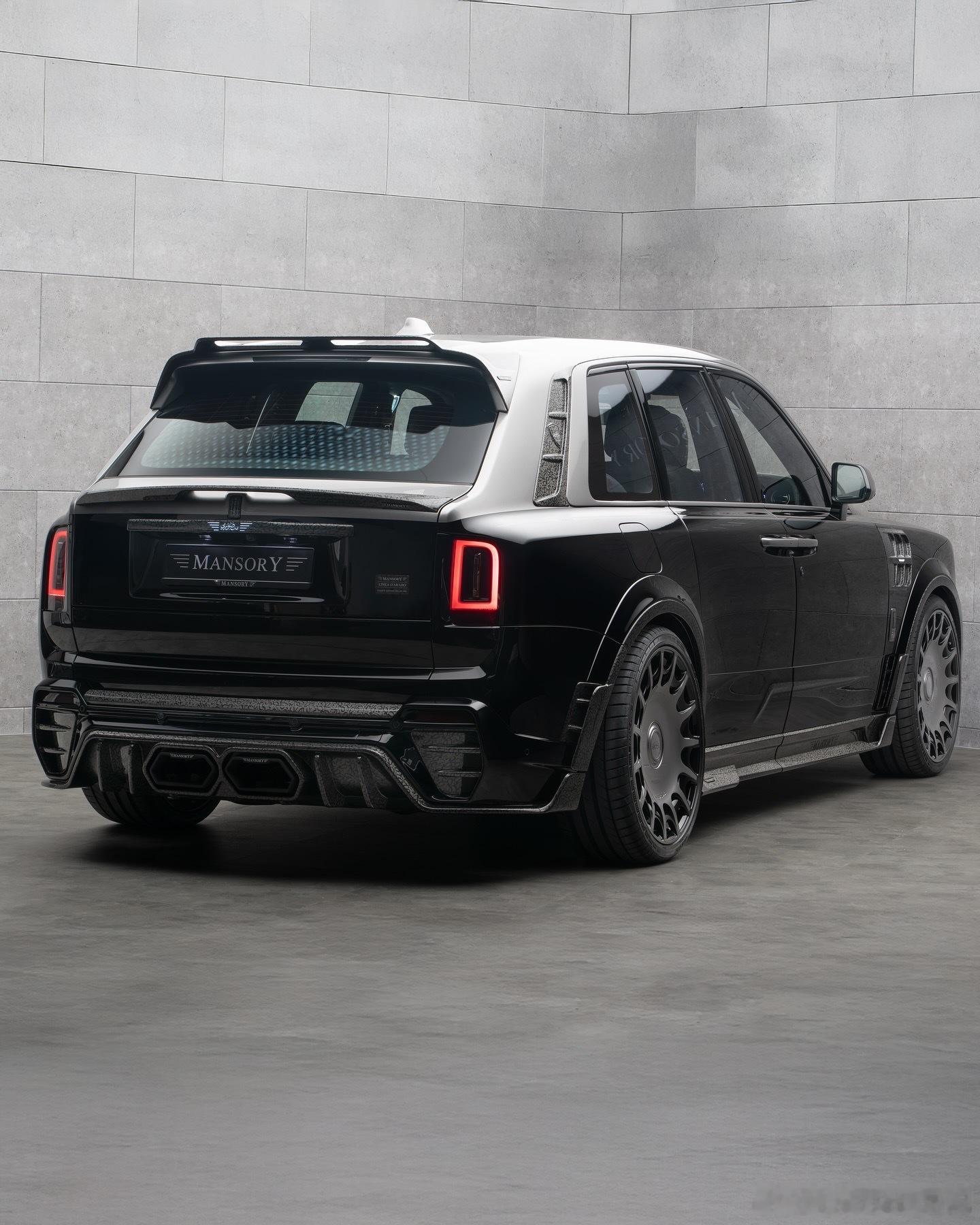 基于劳斯莱斯Cullinan打造;采用锻造碳纤维材质,银色“MANSORY”字样,以阿拉伯文形式交织;配备全新FD.30款式锻造轮毂,直径24英寸,全皮革Atelier内饰,点缀众多银色元素;动力提升至720马力(系列为600马力),扭矩提升至1,050牛·米(系列为900牛·米)。这使得从0加速到100公里/小时仅需4.8秒。最高速度仍由电子系统限制在250公里/小时。