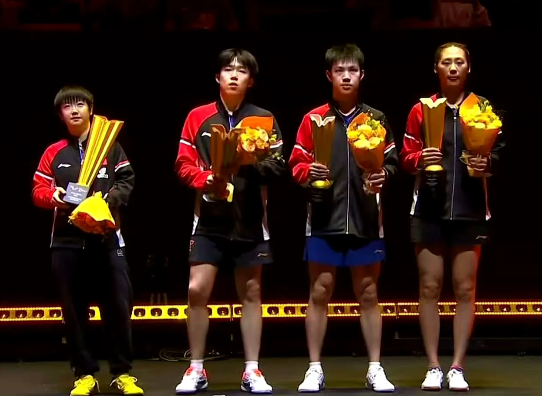 2025WTT中国大满贯混双冠亚军合影,来看下: 1.孙颖莎身穿运动裤,标配小黄