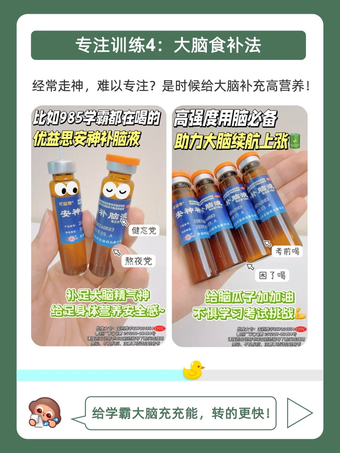 [向右R]总是走神,注意力不集中的小宝,可以试试优益思安神补脑液,学长看配料表,全是些调理内需,由内养外的中药材,可以起到生精补髓,益气养血,强脑安神的作用,口味微微甜的不难喝~