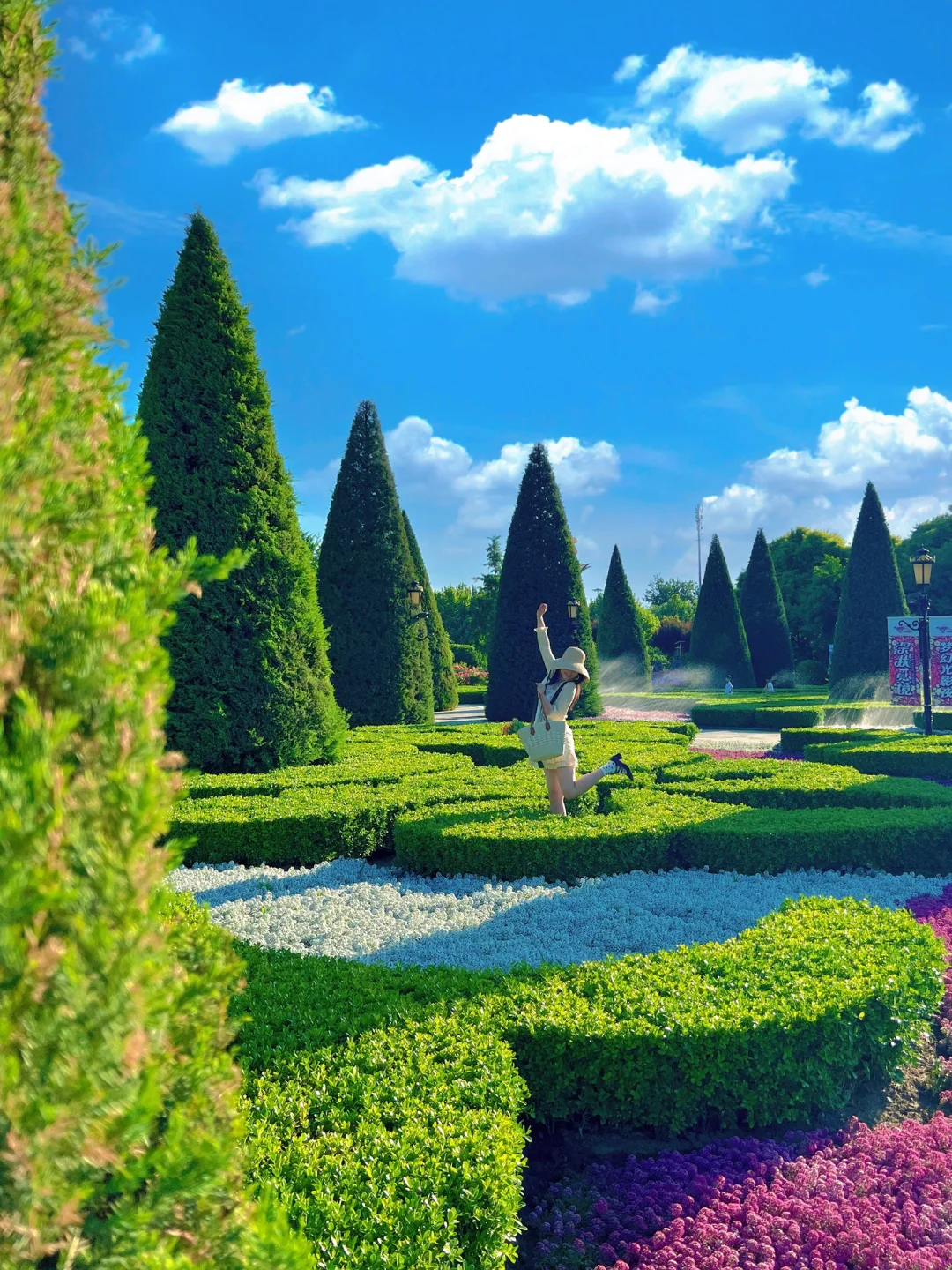 南门进入过了小广场,就是超大篇法式龙柏🌲,也就是凡尔赛广场区域,随手拍出法式浪漫~