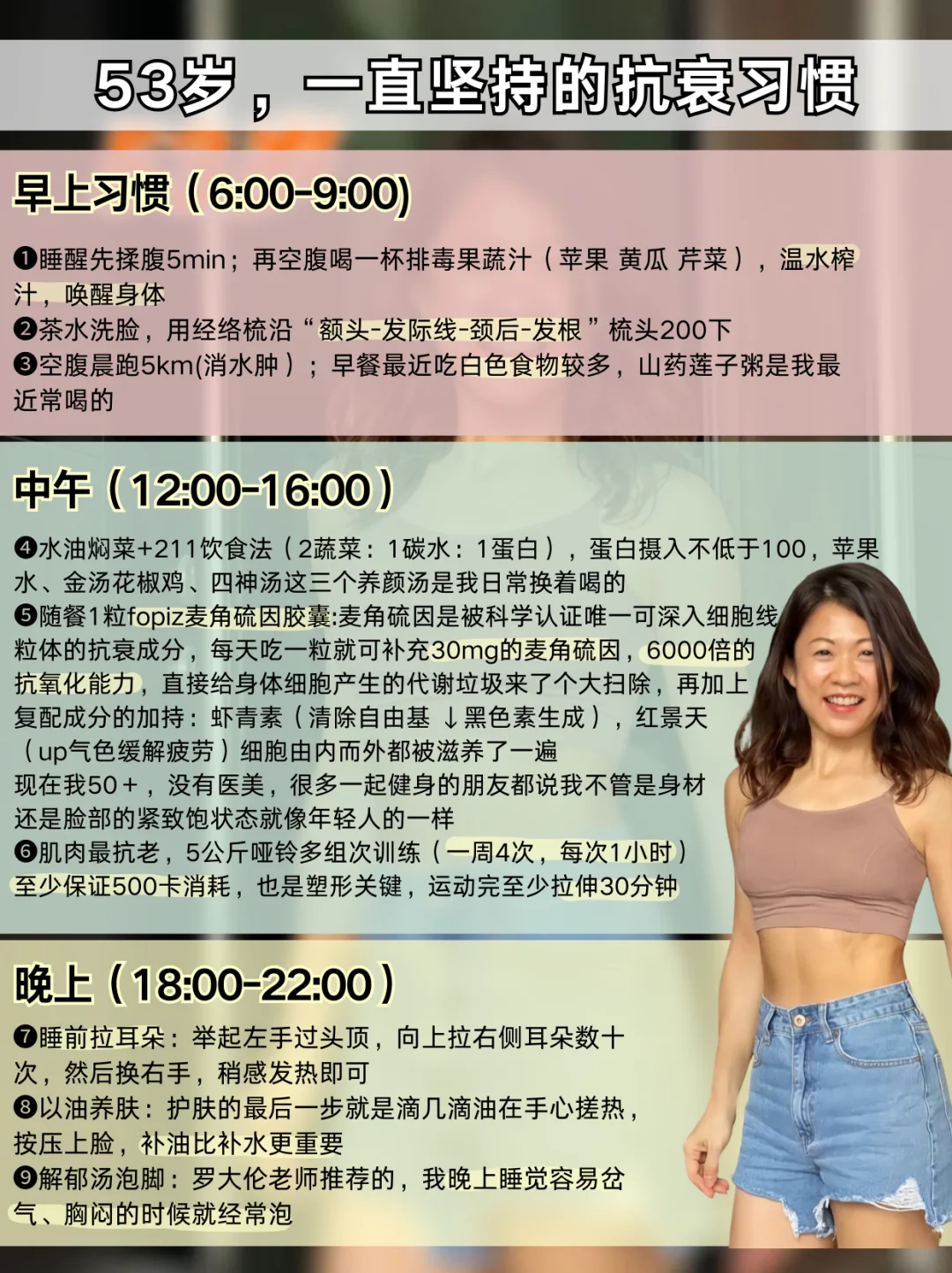 现在我50+,没有医美,很多一起健身的朋友都说我不管是身材还是脸部的紧致饱状态就像年轻人的一样,还有去年去参加健美比赛的评委,说我有种健康、力量、自信的美感