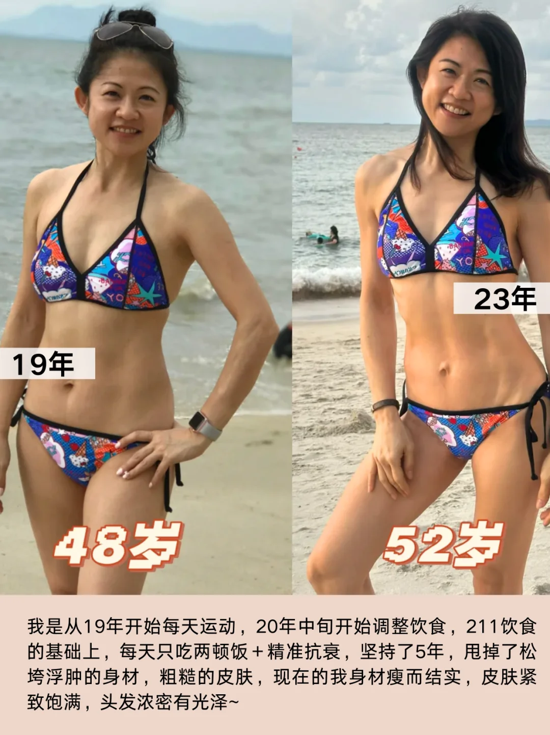 我是从19年开始每天运动,20年中旬开始调整饮食,211饮食的基础上,每天只吃两顿饭+精准抗衰,坚持了5年,甩掉了松垮浮肿的身材,松垮粗糙的皮肤、走路打磨的大腿,现在的我身材瘦而结实,皮肤紧致饱满,头发浓密有光泽,跟女儿出门会被认成姐妹,跟儿子出门会被当成姐弟,孩子们都替我偷着乐