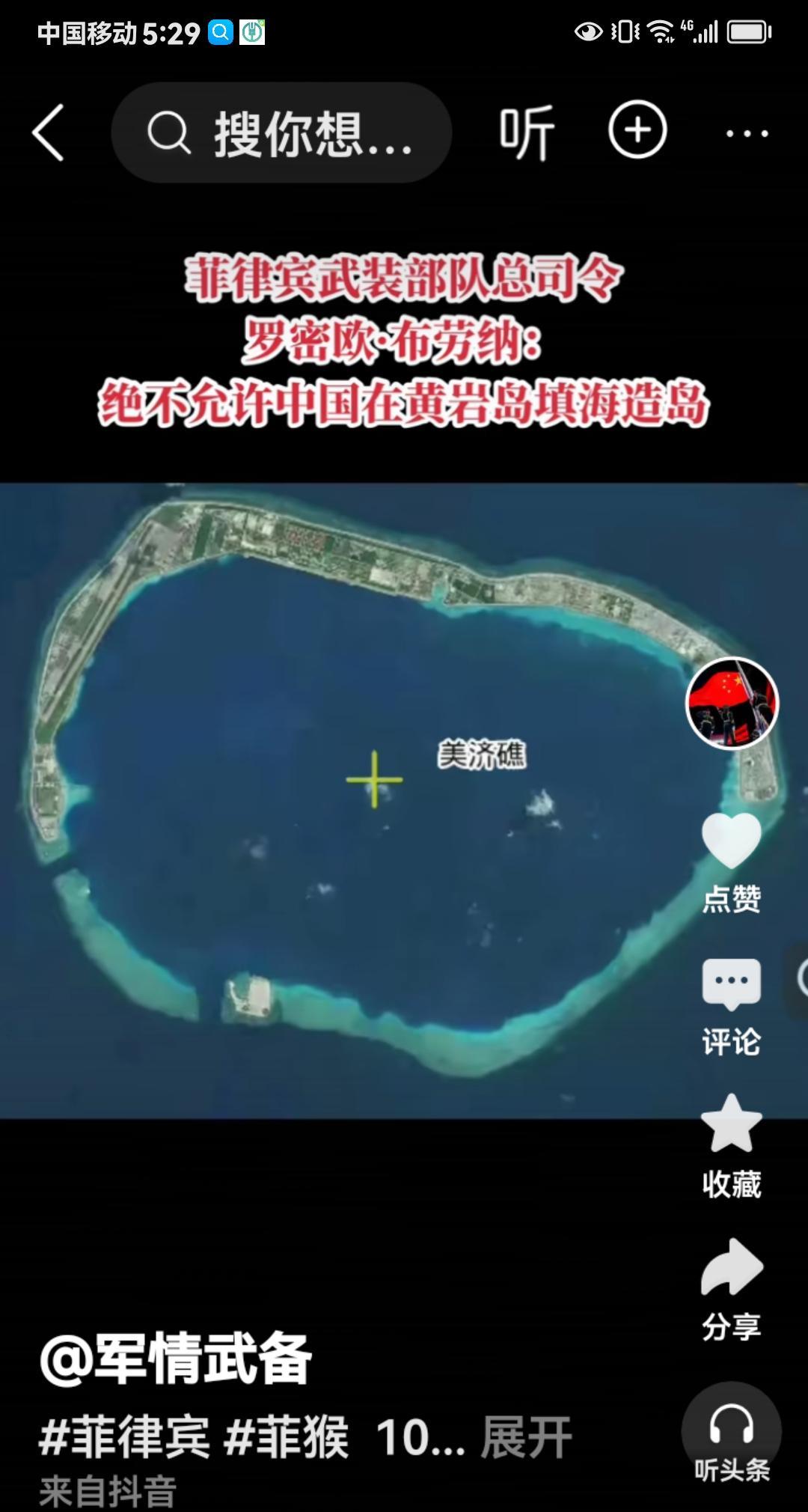 “绝对不允许中国在黄岩岛填岛造陆”?布劳纳此言底气何来? 10月3日,菲律宾总参谋长布劳纳,又一次在中国黄岩岛问题上说大话。 他说:绝对不允许再出现第二个美济礁(图一,美济礁)。绝对不允许中国在黄岩岛填海造陆。 这话说的太大了,落实起来难于上青天。 中国实控的美济礁自不必细说,因为那本来就是中国的土地。而且这刚刚算开始,下一步包括越南,菲律宾等侵占的中国岛礁,都必须还给中国。 最可笑的是这猴子居然敢说“绝不允许中国在黄岩岛填岛造陆”。黄岩岛已经设立为国家级自然保护区,后续建设绝对会陆续跟进,这是毋庸置疑的。 那么,到我们在黄岩岛搞建设的时候,你布劳纳以及你手下的那群猴子,拿什么“绝对不允许”?