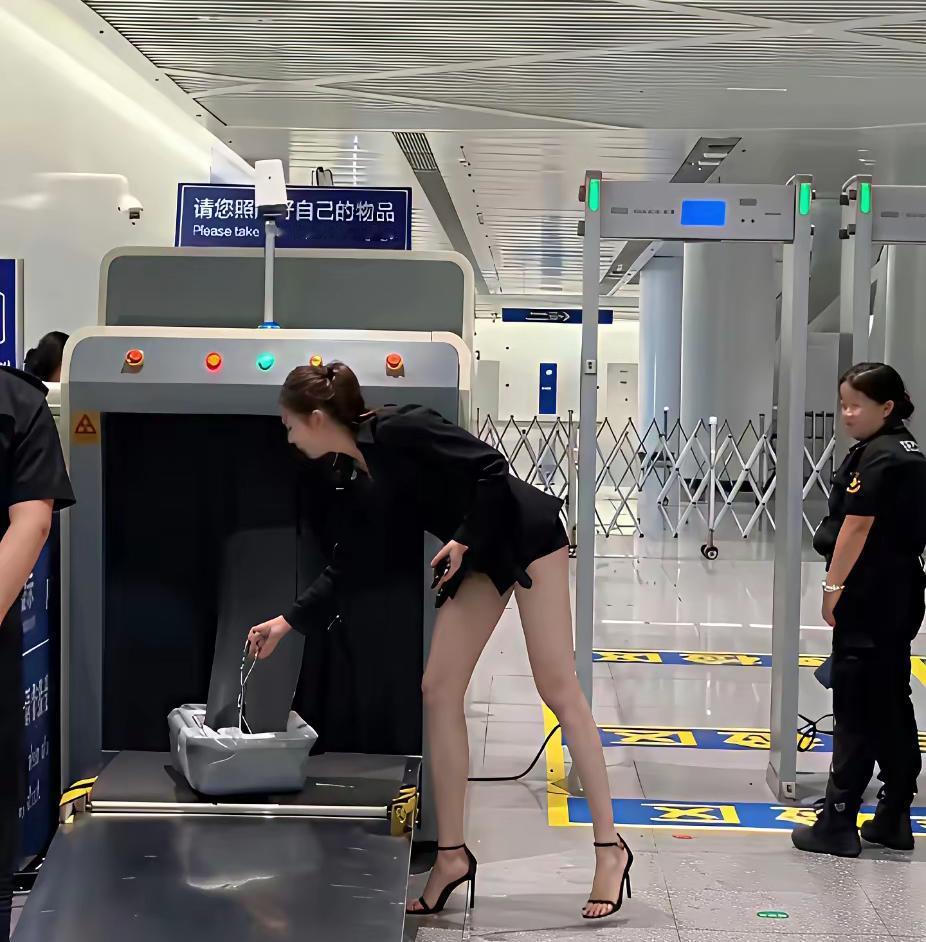 今天过安检, 我一眼就瞧见前面一美女, 那腿又长又白, 跟加了十级美白滤镜似的