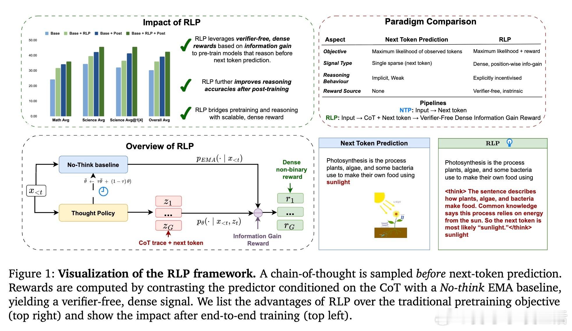RLP:将强化学习引入预训练,模型“先思考”再预测,显著提升推理能力