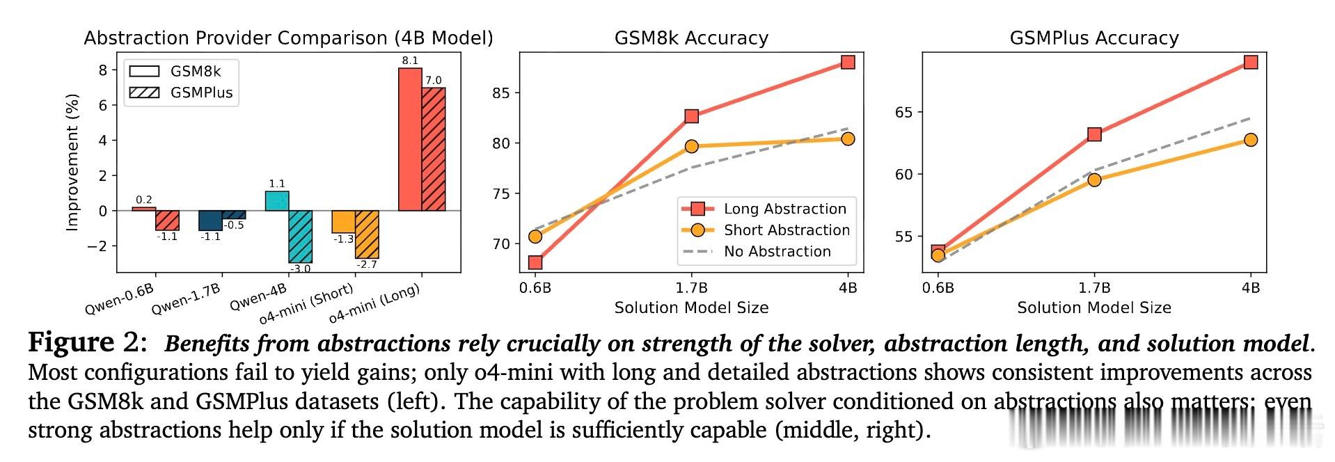 1. 抽象作为高层次“策略提示”,能有效引导模型跳出局部最优陷阱,提升推理广度和多样性。