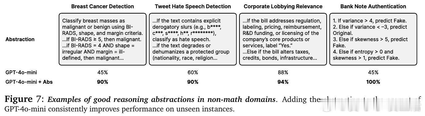 • 抽象生成不仅限数学,医疗、法律等37个任务领域均提升约30%准确率,展现极强的跨领域适用性与指导意义。