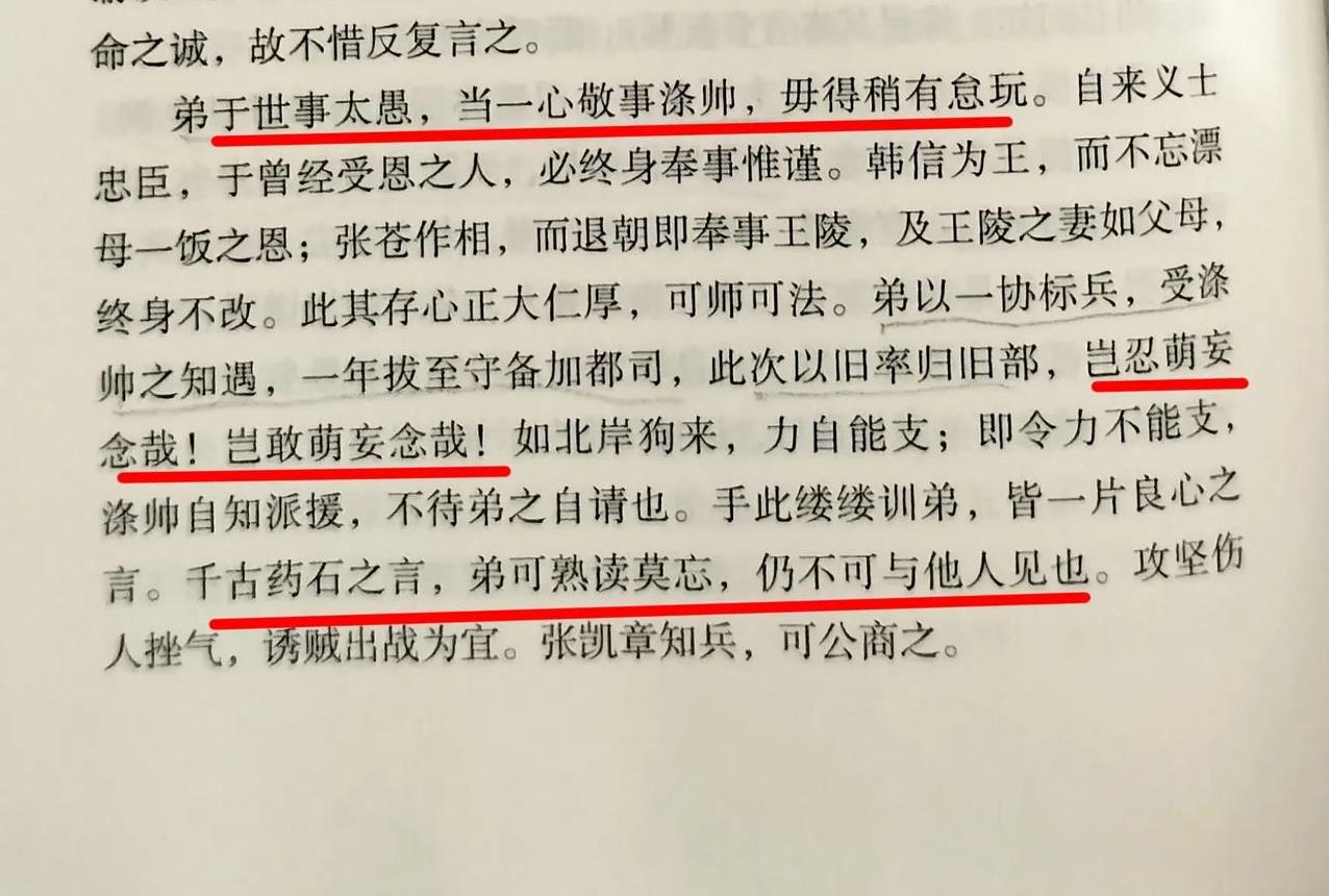 鲍超勇猛但鲁莽。英法联军攻占北京时,咸丰令湘军鲍超霆营北上勤王,胜保欲乘机将鲍超调至麾下节制。曾国藩、胡林翼忧心忡忡。最终,曾国藩采用李鸿章的“拖”字诀,上折询问咸丰帝,在自己和胡林翼之间,选派谁统兵北上勤王,在热河的咸丰收到奏折后再发出圣旨,这一来一去,一个月就过去了。恭亲王在京城与洋人达成了和议。咸丰令湘军停止北上。 但是,鲍超不懂这些。 在这段时间里,他心心念念率军北上,因迟迟未动身,遂对曾国藩心生不满,口发怨言。胡林翼致信鲍超,严厉嘱咐他不得妄生他念。但是鲍超认识达不到曾国藩、胡林翼水平,依旧充满疑惑,心中依然有不满情绪。 胡林翼无奈,于咸丰十年十月初八再次致信鲍超,告诫鲍超,责备鲍超,说明不能北上的原因。 胡林翼说,胜保奏调鲍超一军北上(“奉严旨饬令鲍超迅速北上,交胜保管带),自己与曾国藩深知胜保为人忮忌贪诈,刻薄狠毒,并且能力很差,专意折磨好人,收拾良将,你如果北上,必定被胜保折磨死。自已与曾国藩不得不采取“拖”字诀。 胡林翼说,你如果知道曾帅此次的恩情,感激涕零尚且来不及。 胡林翼说,曾帅对你的恩情,是天地父母之恩,你自己还蒙在鼓里,不知曾帅苦心婆心想方设法救全你性命。 胡林翼责备鲍超,说你于世事太愚,你应该一心一意敬事涤帅,勿得稍有怠玩,涤帅对你恩情似海,你以一协标兵,受涤帅知遇之恩,一年提拔至守备加都司,此次以旧率归旧部,归涤帅统领,岂能妄萌他念。 胡林翼最后说,千古药石之言,你可熟读莫忘。 胡林翼还郑重告诫鲍超,此信万万不可给他人看。