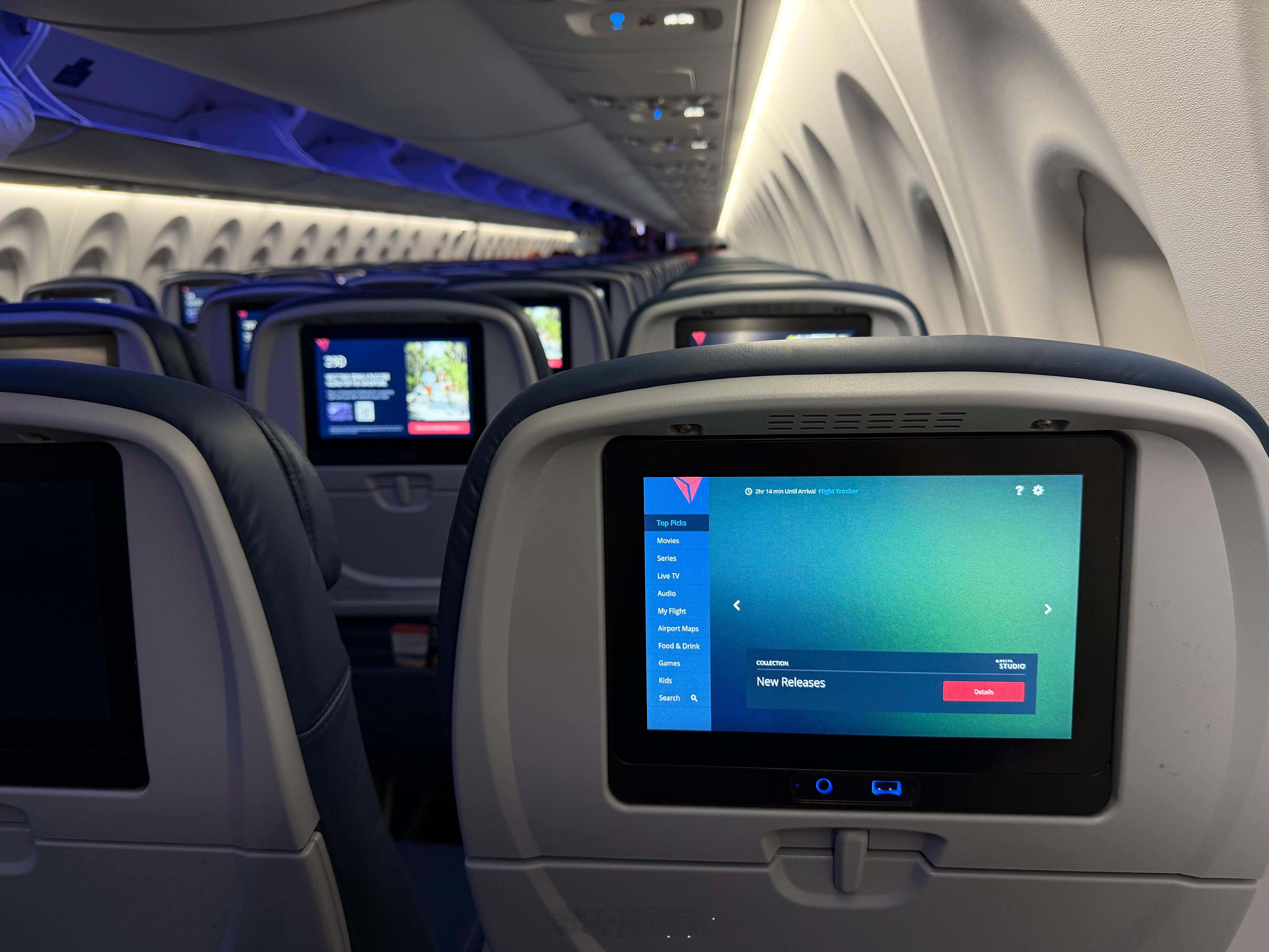 达美航空2+3的小飞机居然还给了机上娱乐系统,