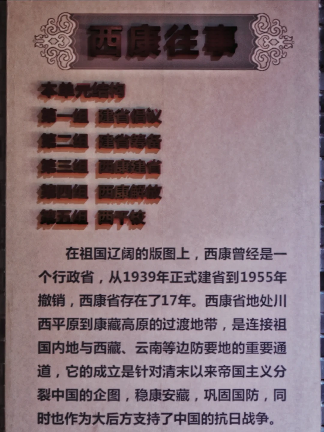🎈西康博物馆分为两层。详细展现了西康省的来龙去脉,政治、历史沿革以及发生过的重大事件;博物馆内还有大量老雅安照片,对西康省的历史、文化、斗争都会有一个全面的认识