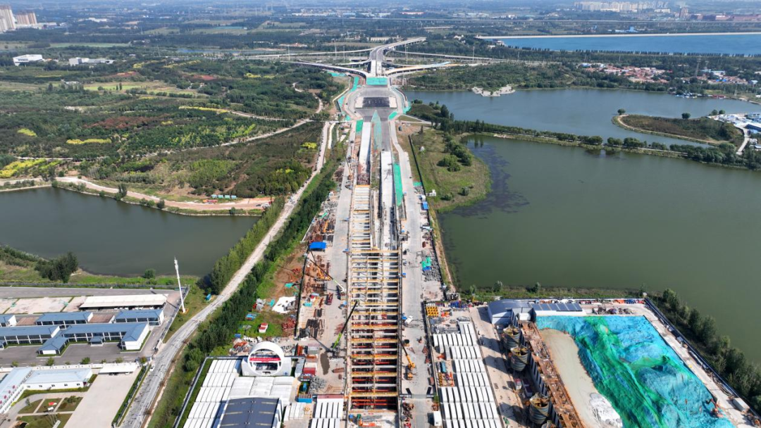 济南市黄岗路黄河隧道工程全长约5755米,其中隧道段长约4762米,盾构段长约3290米,单洞双层布置。项目建成后将有效缓解济南黄河大桥、建邦黄河大桥的交通压力,提升区域交通通达性与便捷性,完善城市北部交通网络布局。目前北岸明挖隧道已完成全部底板施工,正在进行侧墙、中板、顶板施工;G309立交桥已完成14联箱梁施工;北岸接线道路主线施工已基本完成。南岸明挖隧道暗埋段、管线施工已全部施工完成,正在进行敞开段主体结构施工;南岸道路工程正在进行辅道、慢车道以及人行道施工。