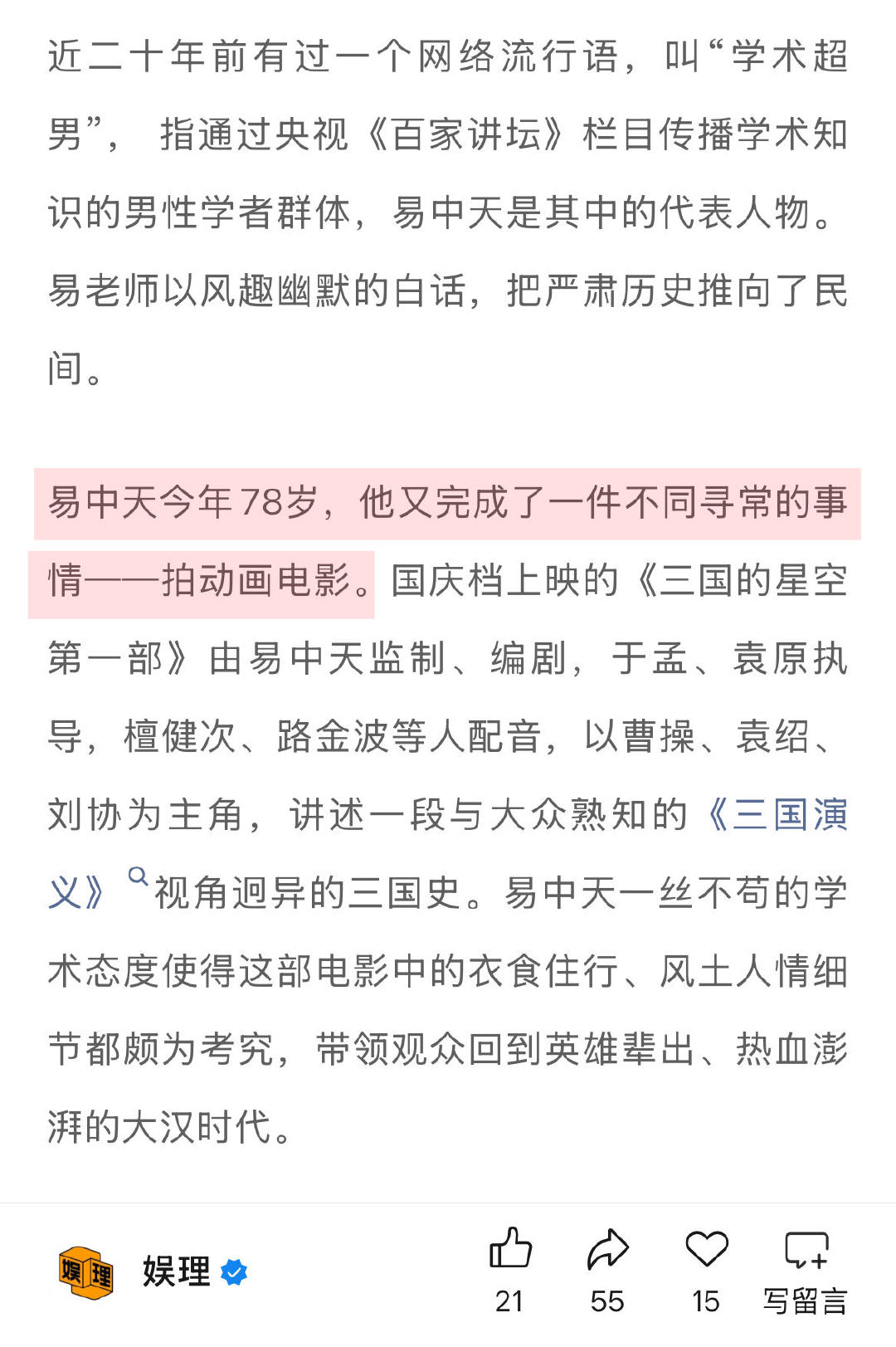 易中天说檀健次的声音就是曹操78岁易中天回应为何想做动画三国《三国的星空》影片