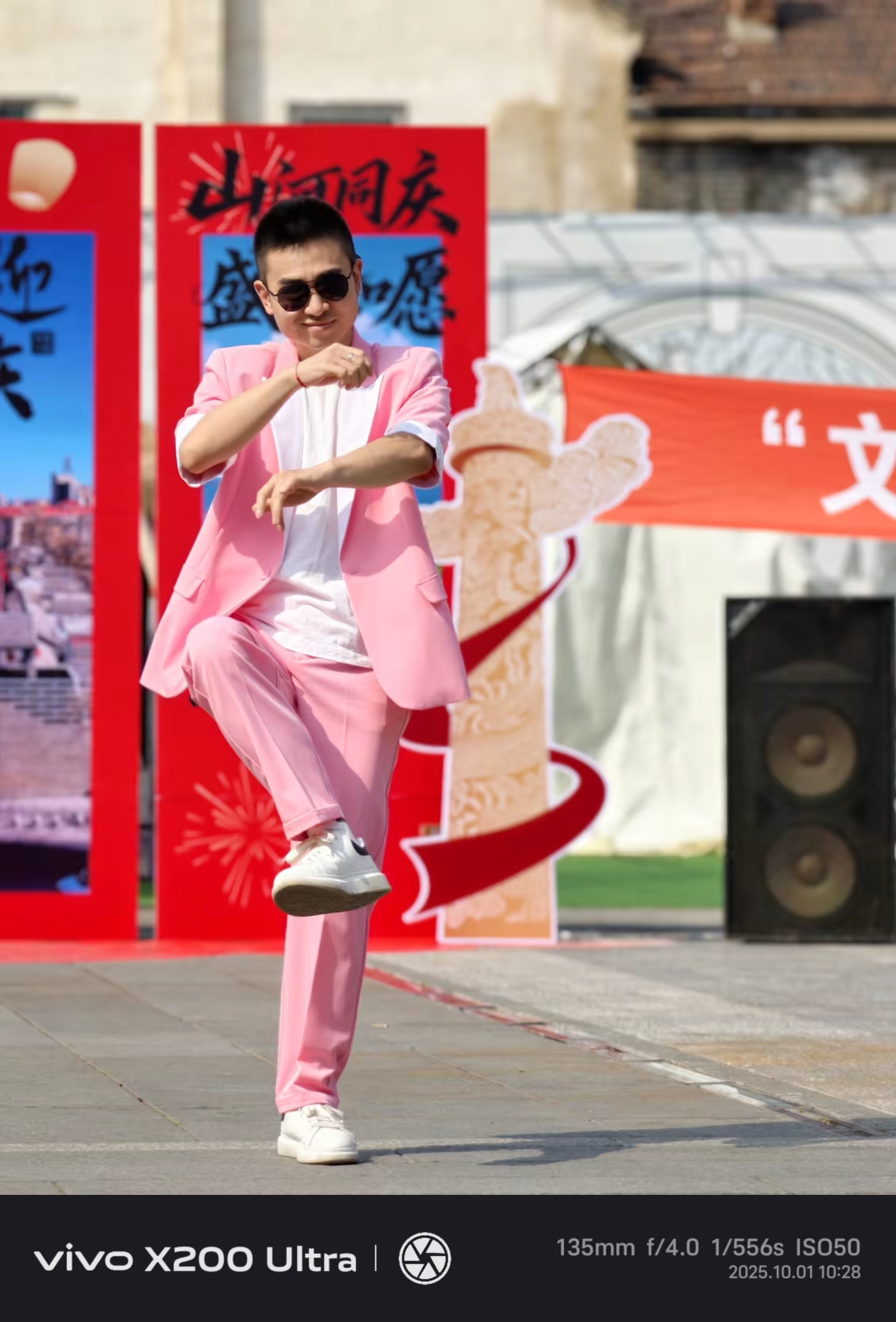 画面中人物姿态灵动,背景的红色装饰也增添了节日氛围,整体成像效果出色。vivo[超话]