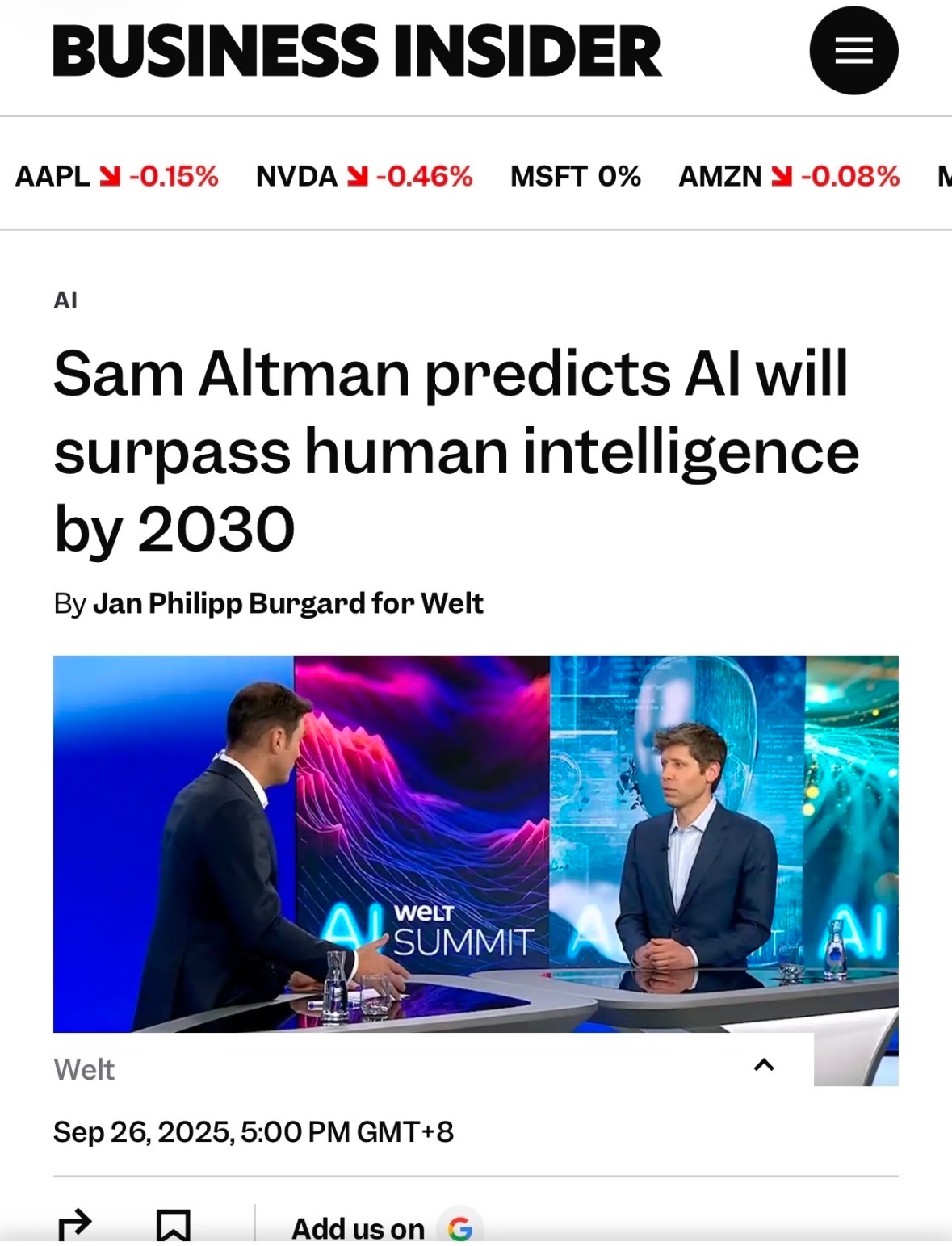 2030年多数领域将被Ai攻克,99%岗位将被影响,奥特曼称那时候Ai将超越人类