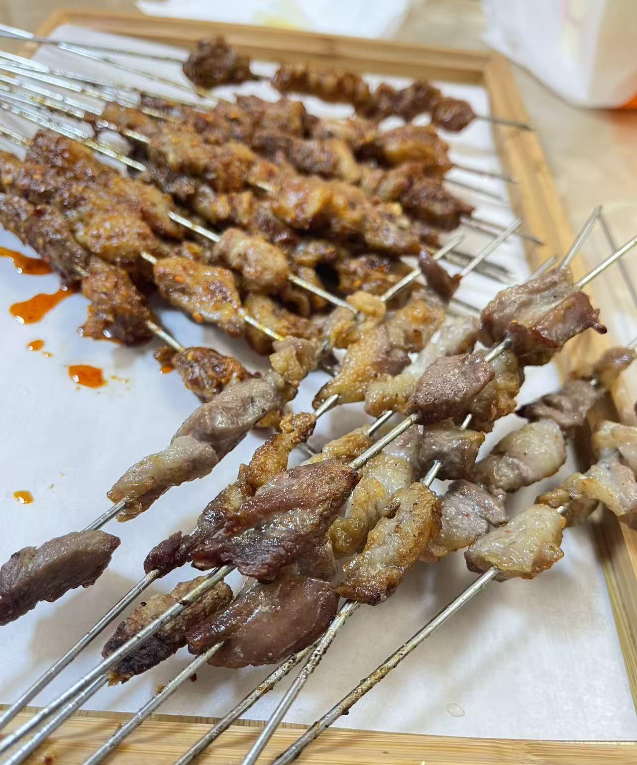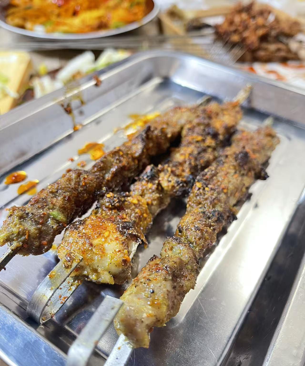 这顿饭是不是比西贝强多了!昨晚带家人吃了顿烧烤,直接给我干撑了,晚上1点了还撑的睡不着。 不过话说这顿烧烤确实实惠,肚包肉我的最爱,一个12块钱,挺大个肉还嫩,配上韭菜花香迷糊了,羊蹄一个15块,肉贼多,肉黏糊糊的特别软烂,唯一缺点就是没给蒜汁,吃多了有点腻,兰州辣子烤肉不错,看着辣椒多,吃起来却不是很辣。盐筋很有特色,羊肉的原汁原味充分体现出来,羊筋是正常版的,香而不腻,关键这么大串,才2块5一串。馕坑烤肉8块一串,肉又嫩又鲜,贼过瘾。 炒拉条这么大份才9块9,不过是服务员让我团购的,说这样最划算。一家三口根本吃不完,最后打包了30几串。总共花费178元,是不是很划算,茶水是免费的,无限续杯!#秋日生活打卡季##晒出你的国庆旅行地点#