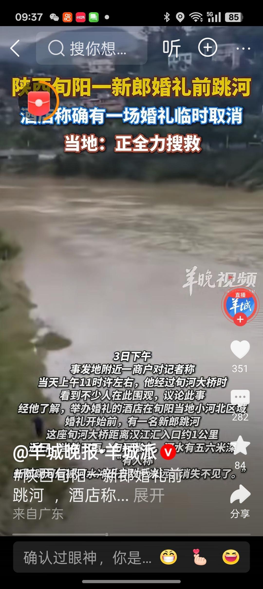 10月3日,陕西旬阳一新郎跳河自杀,知情人透露原因疑似彩礼被临时加价,新郎想不开