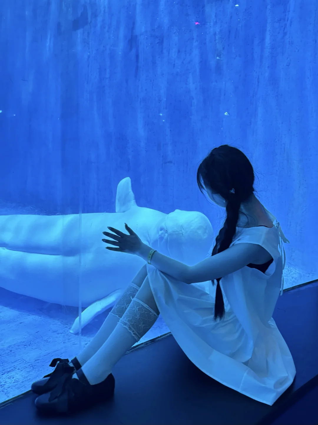❶白鲸展缸p5:拍与巨型白鲸合影 氛围感拉满