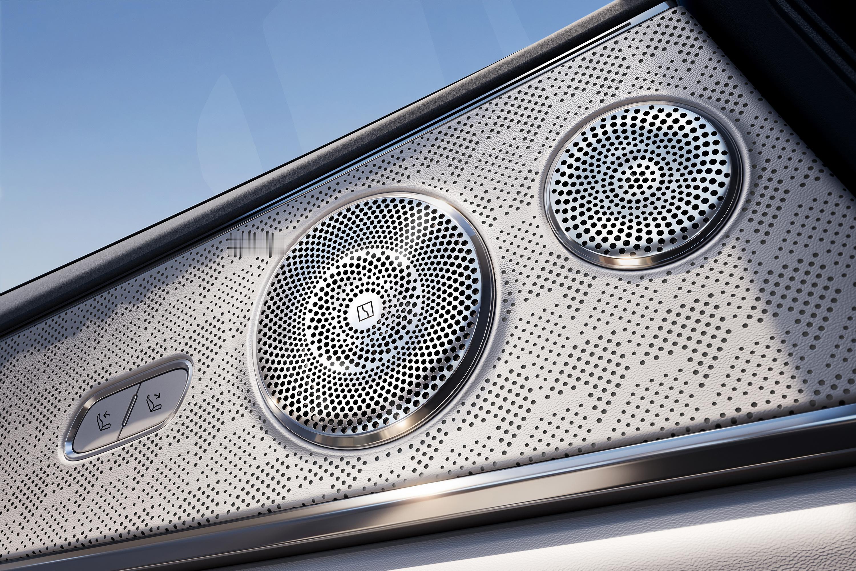海豚音剧院级音响系统功率4680W,29个扬声器包括4个天空音响、8个头枕音响和1个重低音炮,40个独立通道支持杜比全景声。全车头枕音响和座椅振子实现精准声场,高功率输出与智能算法联动中控屏和无麦K歌,扩展娱乐功能。