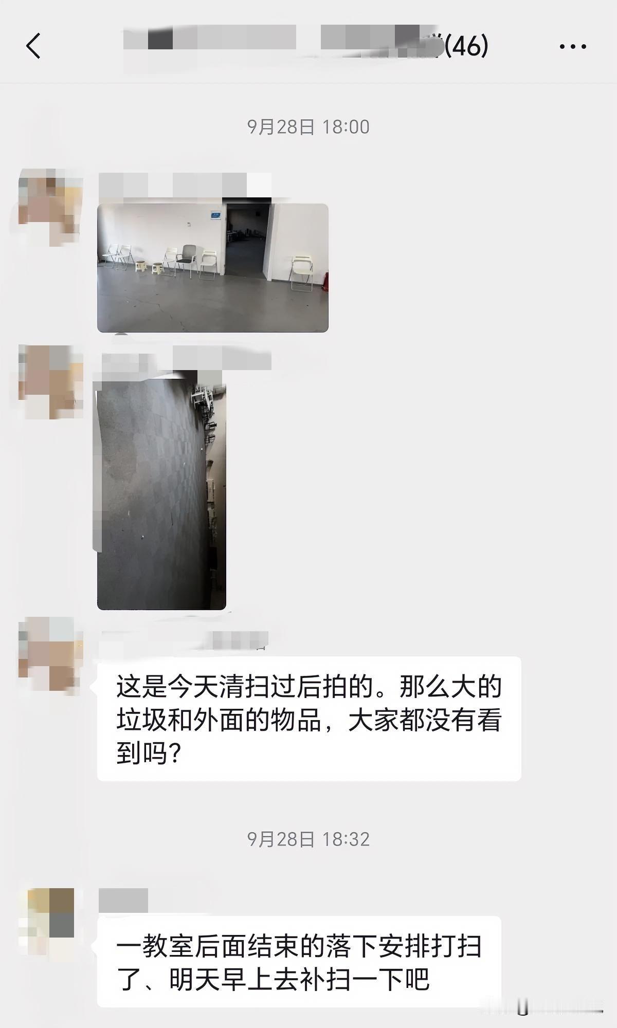 公司要求各部门打扫卫生,再检查的时候,领导发现培训部负责的区域有很多垃圾,于是在群里质问:这是怎么打扫的垃圾,这么的垃圾看不到?这个时候就体现出人家部门领导的担当了,直接回当时有人在开会,所以这边区域忘了分配打扫了,明天早上会安排人补扫,其实我们当时都听到了,部门负责人是安排呢的,不过员工没有打扫,但是人家领导给扛了[赞] 要不说人家部门人心齐了,这样的领导给力!这要是我们部门,估计总监会立即在群里@大家,质问为什么没错,给她个原因和理由之后,然后让大家立刻马上去清扫... 所以很多时候咱不承认不行,还真不是跟谁混都一样!碰上那种能扛事的领导,大家干啥都舒心;碰上那种唧唧歪歪还不扛事的领导,那可就悲催了[捂脸]