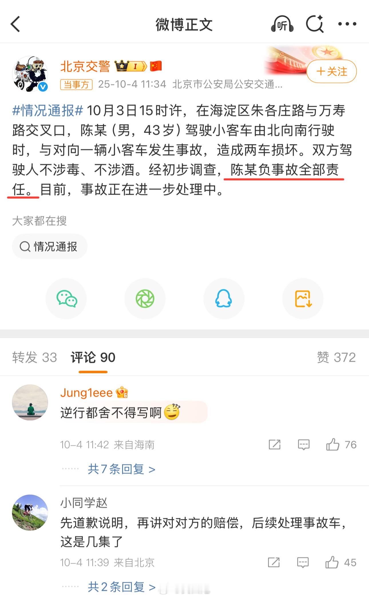陈震负事故全部责任