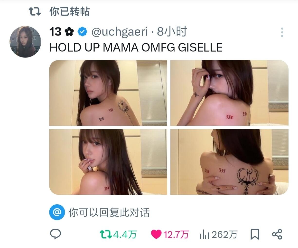 Giselle新营业图数据好吓人八个小时INS200w赞,推特最高12.7w,赞