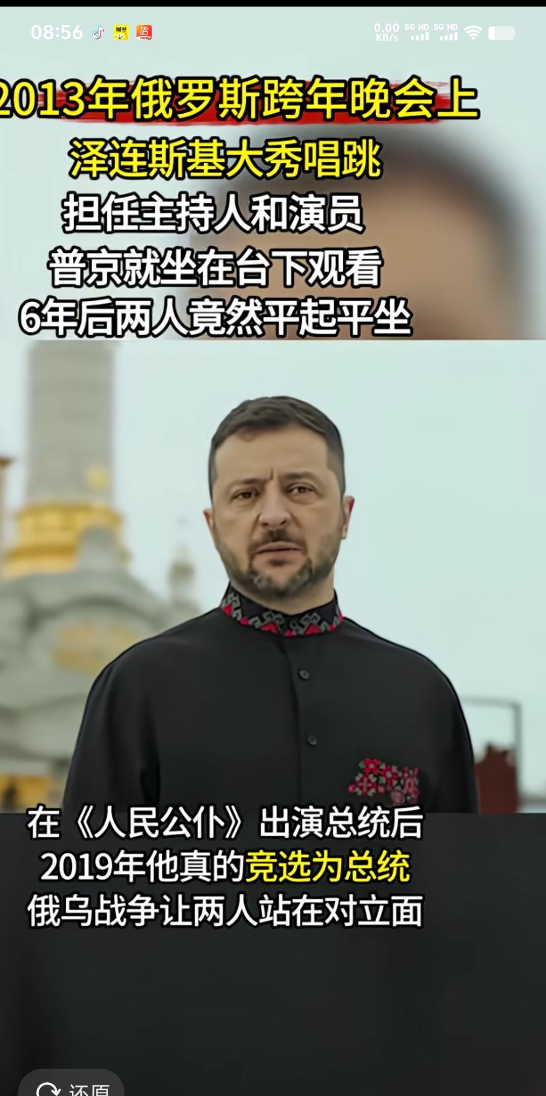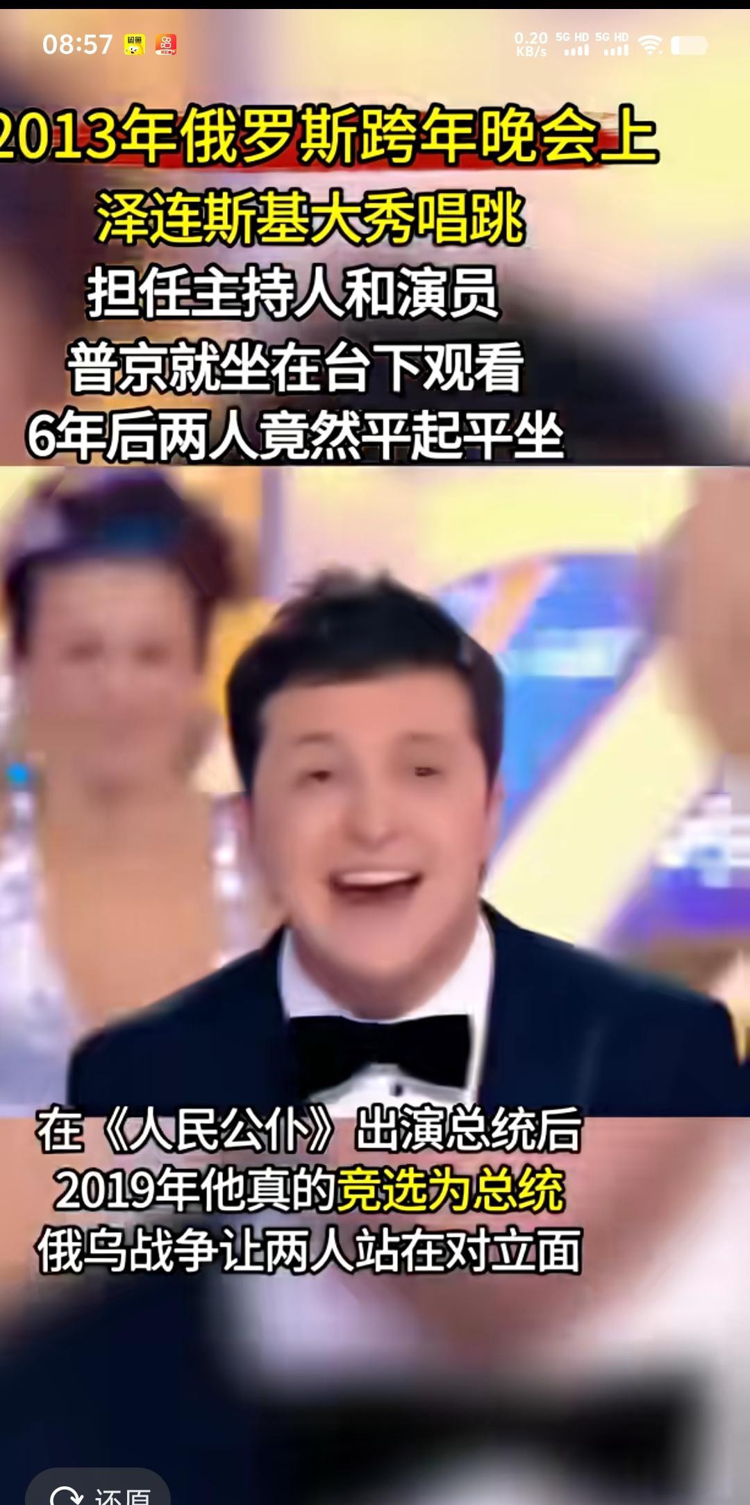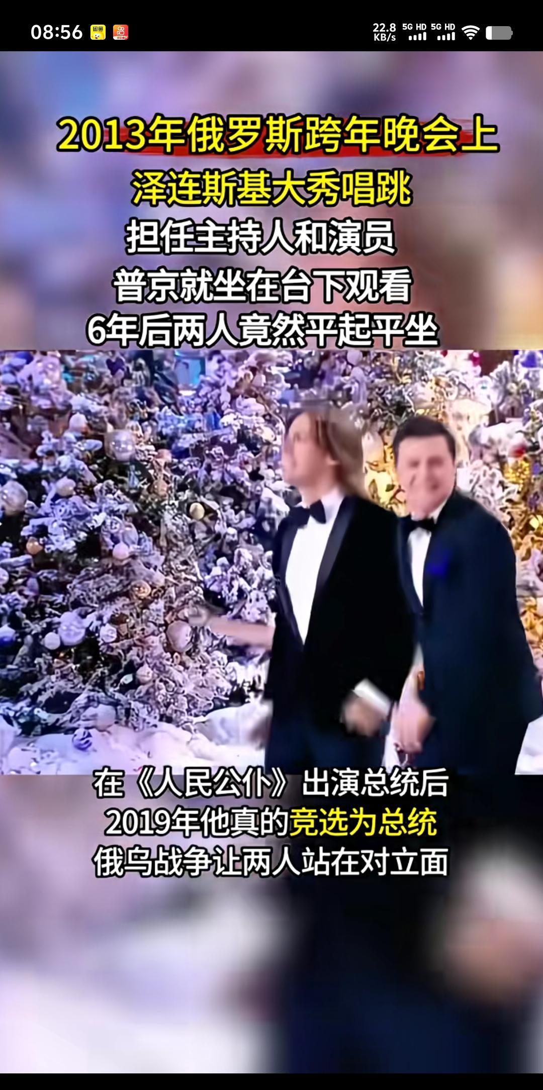 2013年在俄罗斯跨年度晚会上,大帝在台下观看,司机又唱又跳,激情四射,无忧无虑,非常享受这个舞台,那时候他还是个演员。谁知道六年以后,两人平起平坐,十年以后,竟成为战场上的对手。真是人生如戏,戏里戏外又全是人生。 煮豆燃豆萁,豆在釜中泣,本是同根生,相煎何太急。一家人因历史问题分解成两家人,两家人因土地问题变成仇人。所以说这个世界上没有永远的朋友,只有永远的利益,任何关系都是利益的博弈,价值的博弈。