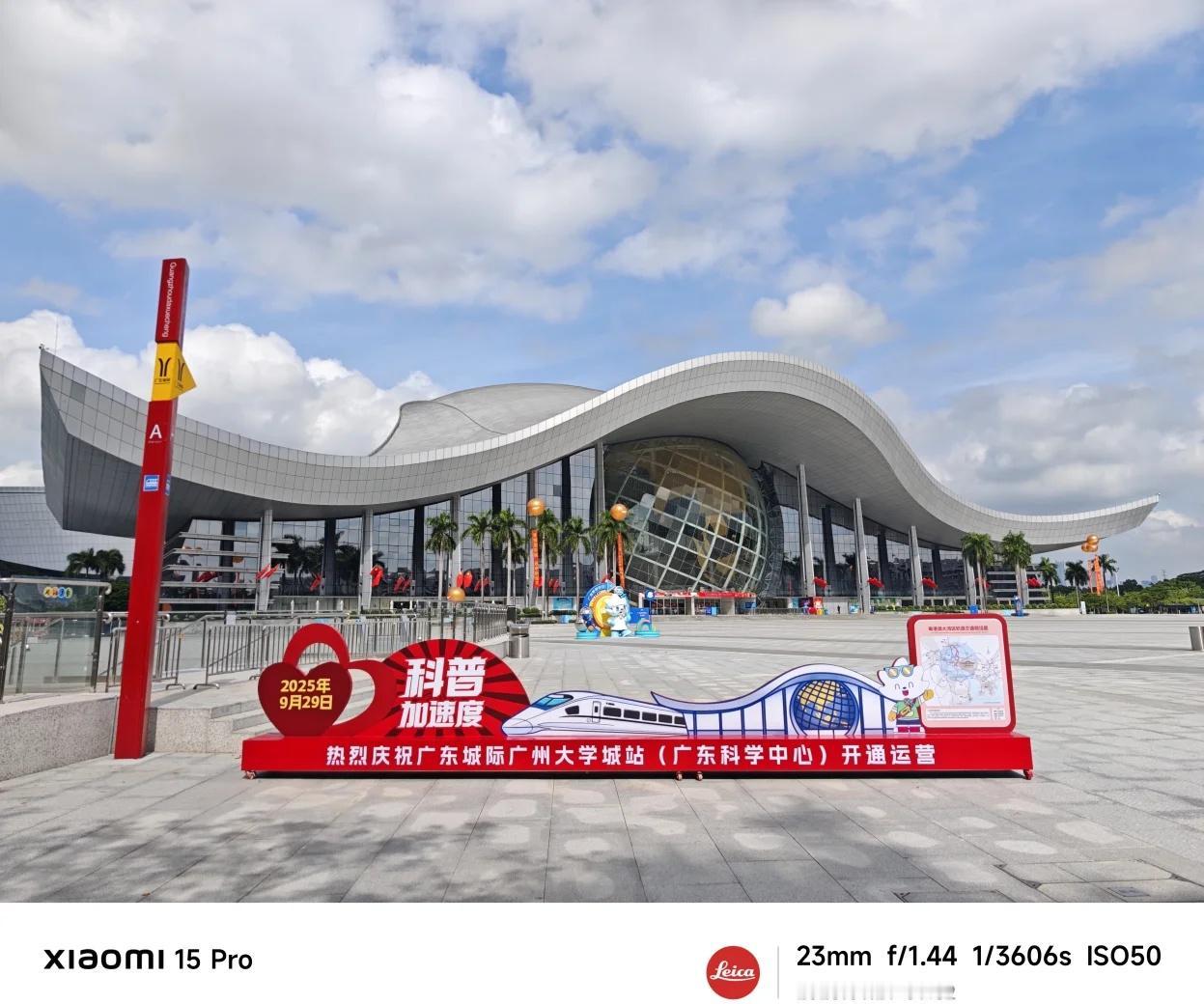(附现场多图)广州大学城站今日正式开通! 广州大学城站现场多图新鲜出炉! 就在广东科学中心门口,靠近广州大学西门 目前只开通了B口,A口和C口还没开放 -到琶洲站要6分钟(💰5,建议在11号线换乘,8号线要步行7分钟以上) -到番禺站(广州南站)要13分钟(💰6,番禺站到广州南站要预留10分钟以上换乘时间) -到白云机场南要1小时(💰27) •广州大学城站可换乘直达佛山/东莞/惠州/肇庆/清远(详见线路图) •可12306购票/羊城通/广州地铁APP。 轨道交通 城际广州大学城站 广州东环城际 广东科学中心 广州大学