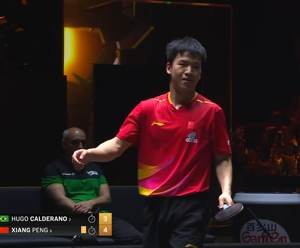 向鹏,必将成为国乒又一巨匠! 中国大满贯,向鹏有惊无险4-3战胜雨果,虽然过程曲折,甚至可以说非常艰难,但是在决胜局向鹏打得荡气回肠非常精彩。 向鹏在整场比赛不利局面下,顽强拼搏永不服输,比赛过程一波三折,用了两次挑战(全部失败),一次暂停,并且还吃到了一张黄牌。感觉向鹏并没有被困难吓倒,用坚定的毅力扛下了比赛。 赛后,主管教练庆祝的方式很特别,轻轻拍打了向鹏的脸,这画面温馨而热烈,祝福向鹏越来越棒!