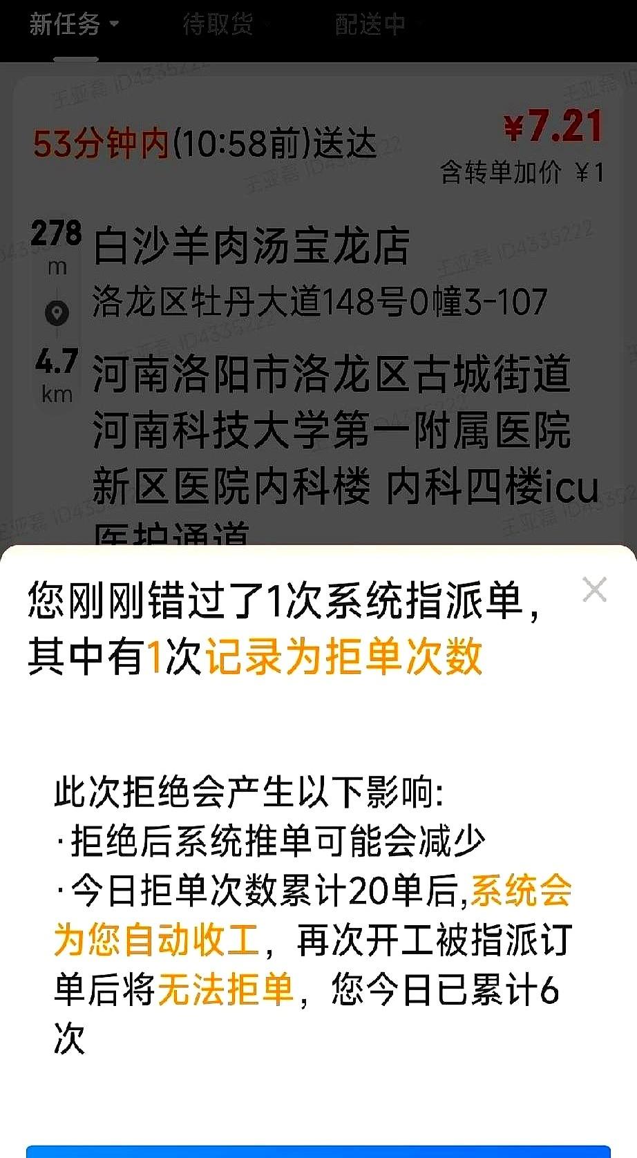 美团一直极限压价,试探底线,3块钱四公里爬九楼,不接就限制你接单。