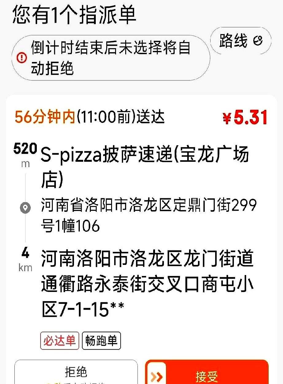 我跑过:三不接:所有低于4元不接(只有京东和顺丰同城还有低于4元的单),价格低于1元/公里(含取件和送件)不接,高楼层楼盘单低于5元不接。