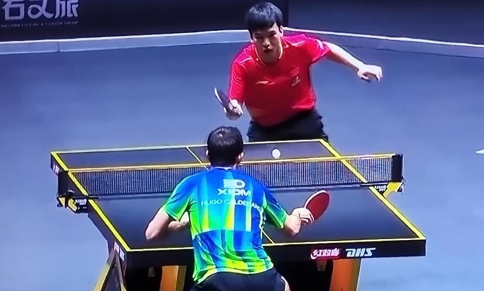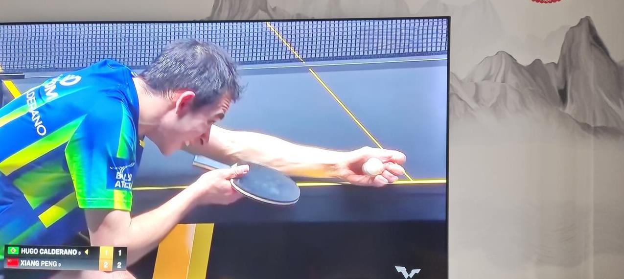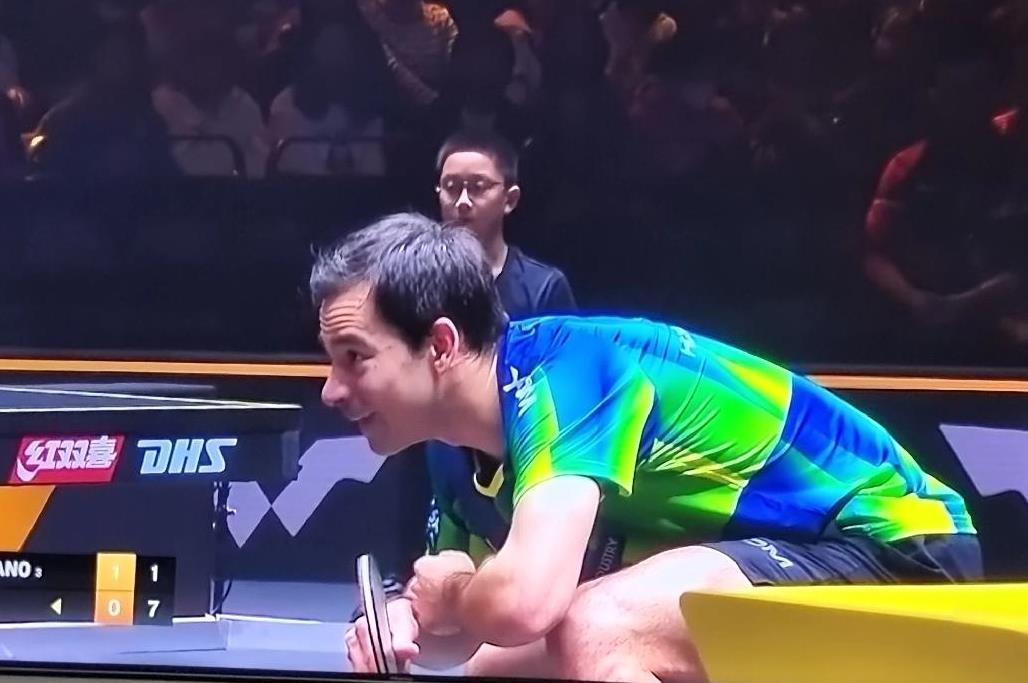 雨果是真急了,头发炸毛了啊! 从首局轻松11:3,到被向鹏同样比分还以颜色拿下第二局,再到第三局又被向鹏拿下。这个剧情似乎出乎雨果的意料,是头脑不够清醒,还是汗水出得太多?局间休息,巴西人狠狠地用毛巾捋自己的头,这头发都竖起来了。 比赛实在紧张!雨果会算,向鹏敢拼,双方都发挥出了极高的水平。如果说两人的势均力敌尚不足以分出胜负的话,那么打破这种胶着和对峙的,必定还会有高人指点参与破局。那是谁呢? 毫无疑问,他就是本场比赛向鹏的场外指导——陈振江教练! 无论是落后还是领先,这位慈祥的像父亲一样的教练脸上总是坚毅而又充满信任,每一次沧桑的呐喊和握拳加油,都是弟子无尽的动力!暂停布置的战术简单明晰,心理疏导如涓涓清泉,向鹏的胜利,陈导功不可没! 所以,雨果虽然厉害,但输得不冤! 不是父子,胜似父子!希望国乒的这对“父子兵”——陈振江和向鹏,一路向阳,坚定不移走下去!