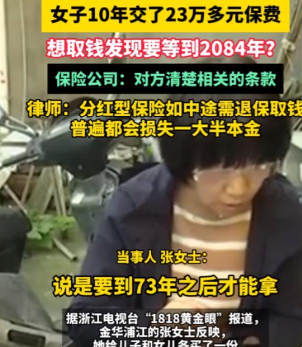 太无耻了!2024年12月报道,浙江一女子2011年买了2份“分红型保险”,10年交了23万保费!销售说交满10年就能取,可如今弟弟癌症晚期急用钱,女子却被告知需要等到2084年,提前取就算退保!然而,保险公司却回应称女子清楚保险条款……网友:保险到期了去取时告诉我,等你死了以后儿子来取,你不死就取不出来! 麻烦各位读者点一下右上角的“关注”,留下您的精彩评论与大家一同探讨!感谢您的强烈支持! 在2011年,浙江金华的张女士在保险营销员的推荐下,给当时七八岁的儿女各买了一份保险。 这种保险属于分红型,每年缴费2.35万元,连续交了10年,累计23万余元。 营销员当时承诺“交满10年,孩子读大学就能连本带利取出”。 可等到2021年张女士想取钱时,却被告知合同期限长达73年,要到2084年才能领取满期保险金。 更让她崩溃的是,如今弟弟癌症晚期急需用钱。 提前退保只能拿回15.6万元现金价值加7万元分红,连本金都亏了1万多。 保险公司回应称,合同明确写着保险期73年,且承保后曾电话回访,张女士确认知晓条款。 由于张女士也无法提供误导录音等证据,公司拒绝全额退款。 事件曝光后,网友炸锅:“这不就是骗局?等你死了钱才能取!” “保险到期了去取,告诉你儿子来取,你不死就取不出来!” 网友们也纷纷为女子说话,一时间网上闹得沸沸扬扬。 而张女士认为,保险营销员就是故意误导自己,因为毕竟长达到2084年的保险,自己怎么也是不会买的。 营销员口头承诺与合同条款严重不符,消费者因信息不对称陷入被动,这也是张女士困惑的原因。 根据银保监会规定,分红险需明确提示“红利非保证”,且需在犹豫期内回访确认消费者知情权。 但现实中,回访电话往往流于形式,消费者在专业术语堆砌的合同面前,很难真正理解长达数十年的资金锁定期风险。 从法律角度看,张女士维权难度极大。 律师指出,分红险中途退保通常损失过半本金,诉讼中法院一般按现金价值计算退费。 保险公司会强调“经营成本”“佣金支出”,而消费者若无法证明销售误导,很难推翻白纸黑字的合同。 云南保监局曾明确,投保后10天犹豫期内可全额退保,但张女士的合同已生效13年,早已错过黄金维权期。 怕就怕这营销员的引导话术太过完美,导致客户被误导。 目前在保险行业,有些营销员为业绩夸大收益、隐瞒期限,甚至利用消费者对“分红”“理财”的模糊认知促成交易。 而保险的本意是抵御风险,而非制造风险。 当消费者为救亲人的救命钱被合同锁死。 当营销员用“比银行理财划算”的话术掩盖长达73年的流动性风险,行业信誉正在被透支。 张女士的遭遇给所有人提了个醒,买保险别只听营销员说,合同每个字都得抠。 那些“稳赚不赔”“随时可取”的承诺,或许只是镜花水月。 你有过被保险销售误导的经历吗?你认为普通人又该如何守住钱袋子? 信息来源:今视频长天新闻