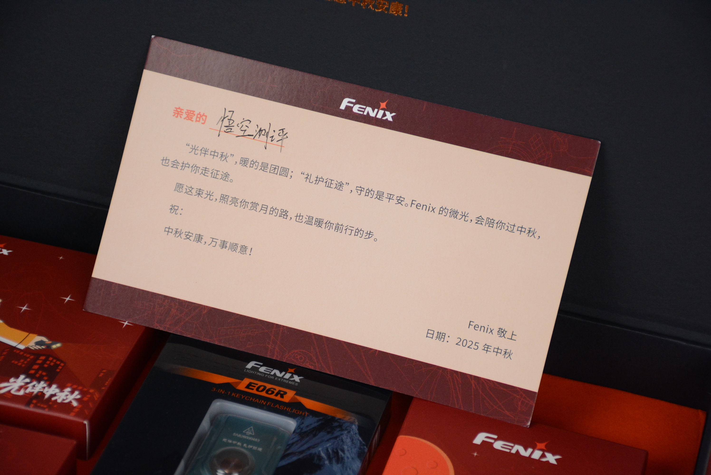手写ID真的有心啦!除了月饼之外,还有FENIX超火的三光源强光手电E06R,好看又强悍!