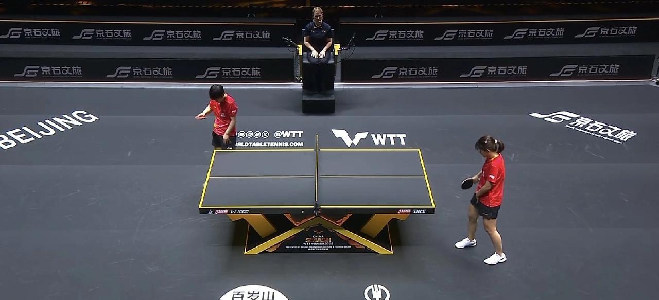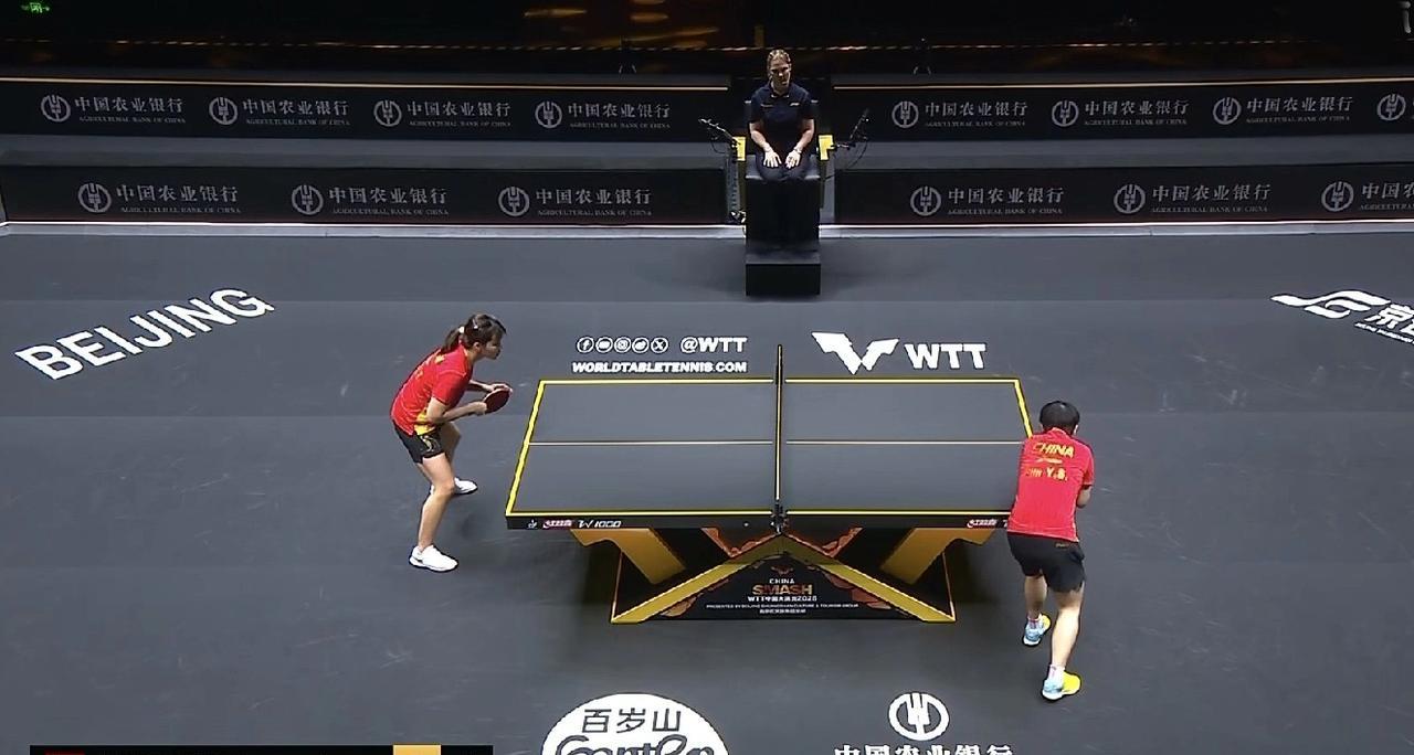 乒乓球规则该限制的没人管,比如球员打比赛都穿成一个颜色服装,就不能规定一下,主队什么颜色,客队什么颜色,岔开一下,给观众更好直觉视觉,这样子是不是对乒乓球发展更为有利。 不该限制的比如发球要求什么高度、还有不能大于30度角度,让裁判怎么判,再一个管的球员都不知道该如何发球了。 这是WTT中国大满贯女单半决赛现场,对阵双方是孙颖莎对陈幸同,别说中国观众有时候一眼都辨别不出来,外国球迷更是无法看出谁是谁了! #乒乓球比赛规则#