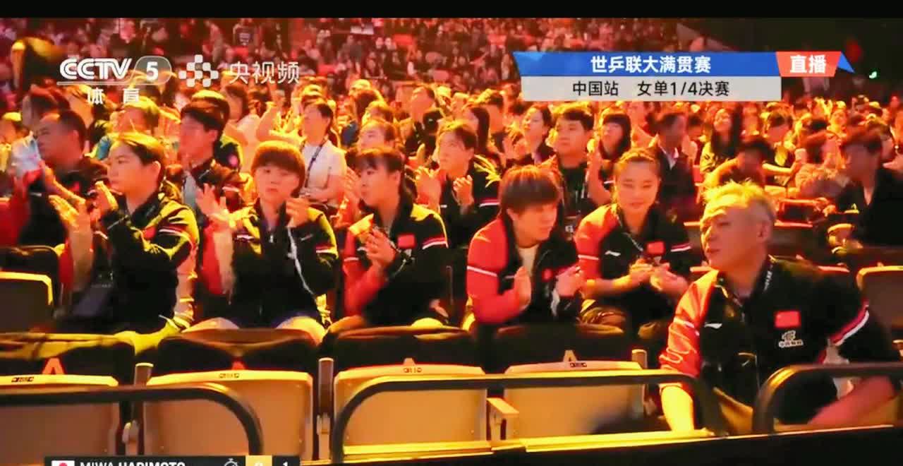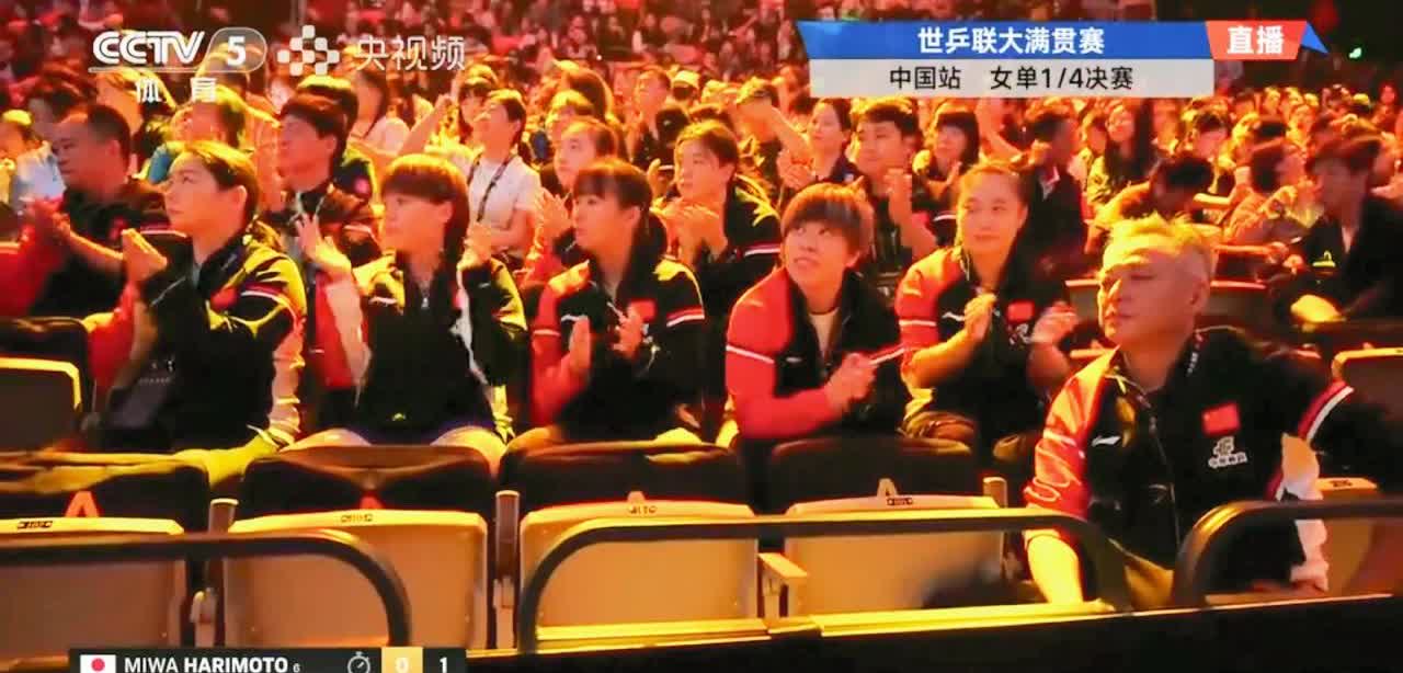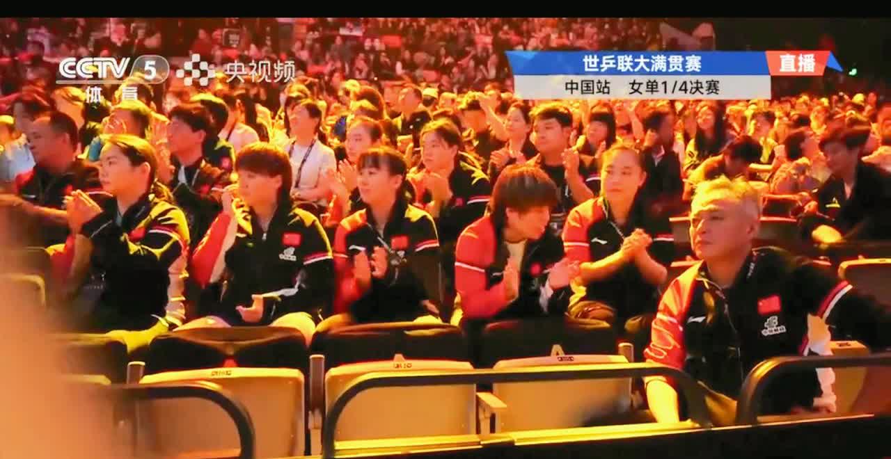 10月03日,秦志戬,徐奕,王艺迪等国乒好姐妹,来到现场为王曼昱加油,看着国乒姐妹花表情,一位比一位淡定,实在太可爱了 王曼昱在大比分3:0时,镜头给到了观众席上的女队队员,原来秦志戬也来到现场观看比赛,感觉他比女队员的表情更紧张,当王曼昱打出精彩的好球时,姐妹们也毫不吝啬,齐心协力的送上最热烈的掌声送给王曼昱,这就是团结又有爱的国乒,王曼昱加油