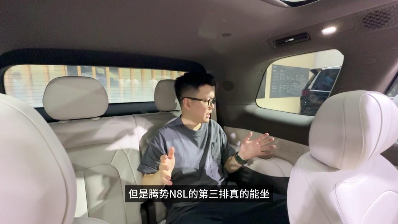 国庆车展逛到腾势展台,一眼就被这辆预售的N8L吸引了。它的尺寸真的超大,车长5米2,宽1999mm,高1820mm,比理想L8、问界M8都要大,在新能源豪华六座SUV里算佼佼者。 外观延续了家族式设计,没有随大流的贯穿灯,车身线条大气又有辨识度,这次新增的翠华墨颜色特别戳我。 配置方面诚意满满,标配2.0T发动机,百公里加速3.9秒,纯电续航230公里,一家人出远门完全不用担心续航焦虑。全系搭载易三方平台,后轮双电机独立转向,最小转弯半径才4.58米,这么大的车身开起来比A0级小车还灵活,市区、高速行驶都很稳,侧倾小,爆胎稳定控制也到位,安全这块真的没话说。 智能化配置也很顶,有1个激光雷达、5个毫米波雷达、12个摄像头的“天神之眼B”系统,城区或高速都能用,出门特别省心。 坐进车内,豪华感直接拉满。预售价30万就能有这配置,真的很惊喜。皮质质感好,20扬声器的帝瓦雷音响、香薰系统、冰箱、大彩电都安排上了,娱乐体验超棒。 作为六座SUV,家用场景考虑得很周全。智能生态无界互联,还和好孩子、倍轻松合作,带来更智能的儿童安全体验,大人也能享受专业SPA。最让我意外的是第三排,完全不是摆设,坐着很舒服,还配备电动调节、独立空调出风,连帝瓦雷音响都没落下,真正做到了6座同等舒适~ 腾势N8L