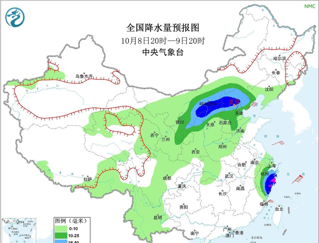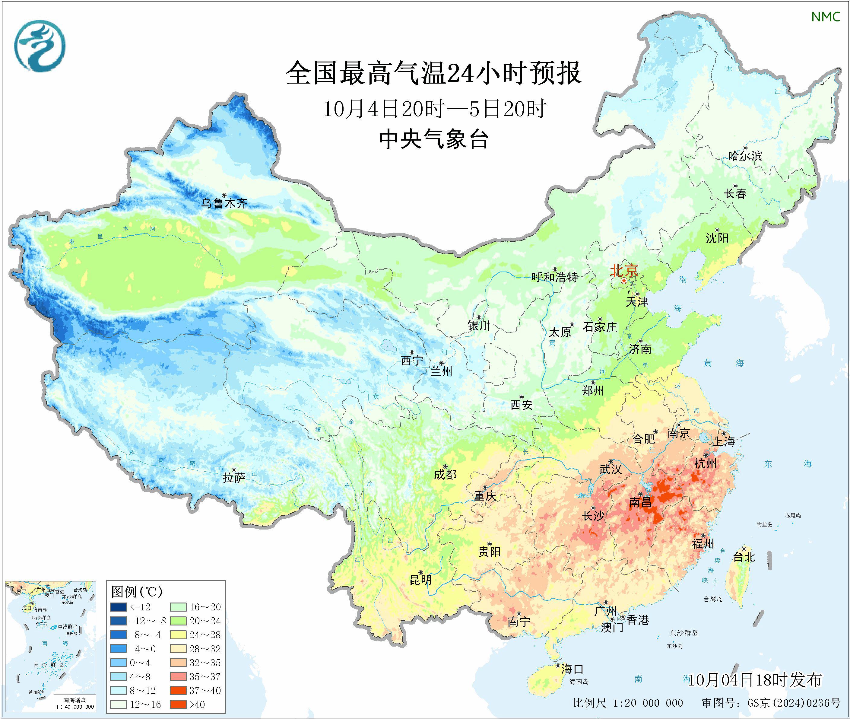 未来三天,甘肃东部、宁夏南部、陕西、四川东北部、湖北西北部、河南西部和北部、河北南部、山西中南部、山东等地部分地区将有中到大雨,局地有暴雨。 未来三天,江西、浙江、福建、湖南南部、广东北部、广西东北部等地部分地区将有35℃以上的高温天气,局地最高气温可达37~38℃。