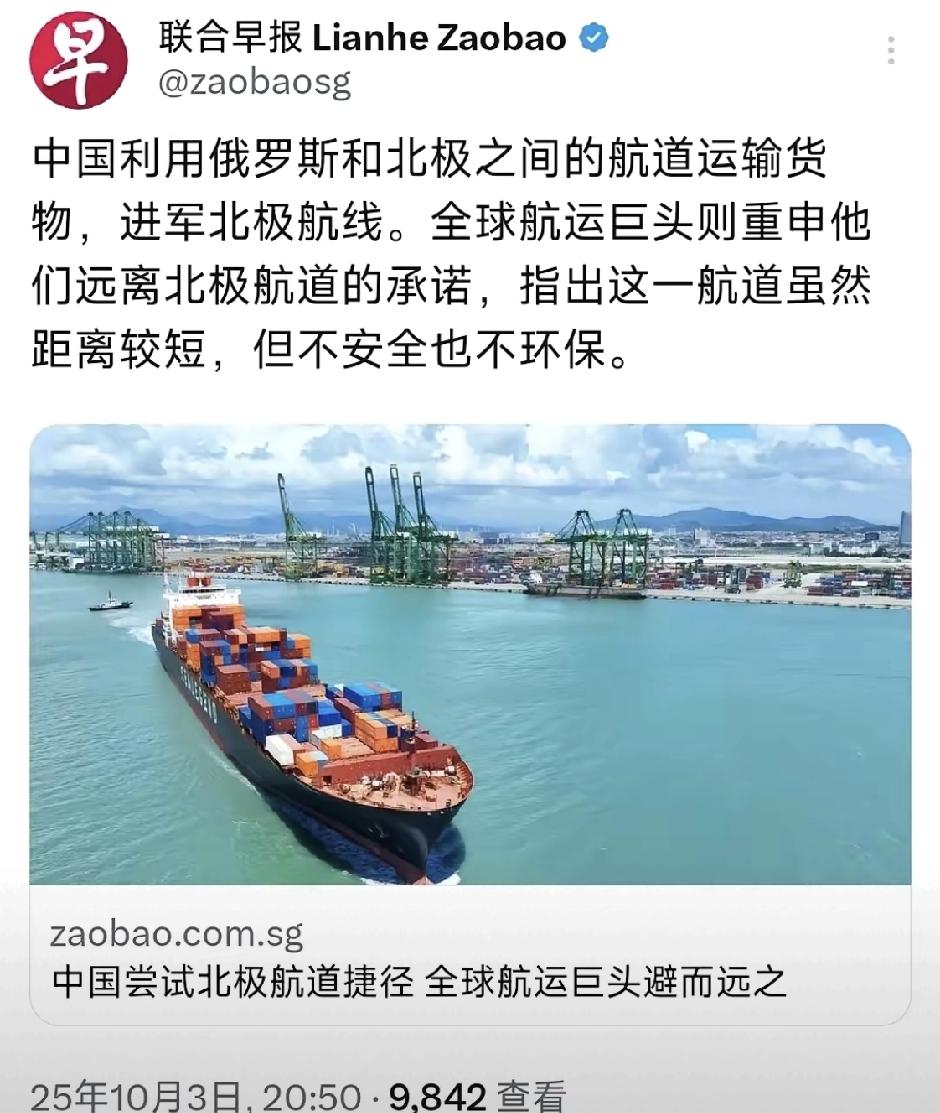 中国货轮借俄破冰船首航北极航道,看似“冰”路取直,实则步步惊心: 航程减半:18天直抵欧洲,时间、燃油成本双降,马六甲困局迎刃而解。中俄联合研发的核动力破冰船(如“雅库特号”)可破开3米厚冰层,护航能力覆盖全年90%通航期。亚马尔液化天然气项目通过北极航线运输,单船运量达17.4万立方米,较苏伊士运河航线节省15天。 巨头却步:全球航运巨头齐声说“不”,冰情难测、保费飙升、环保原罪,一条随时“变脸”的航道,谁敢拿百年船队去赌?达飞集团明确拒绝北极航线,其LNG动力船队年减排量达500万吨,而北极航线单次航程碳排放仍比传统航线高12%。国际海事组织数据显示,北极事故率是热带海域的3.2倍,搜救响应时间超24小时。 地缘暗流:北极几乎俄“门禁”,西方制裁下,谁用谁“站队”,冰上丝路成了价值观分水岭。美国《北极挑战-2023》军演集结150架战机,距中俄联合护航舰队仅200公里。欧盟碳边境税将北极航线运输成本推高8%,而中俄采用本币结算规避美元制裁,2025年北极贸易人民币结算占比已达37%。 北极航道本质是地缘经济与生态伦理的博弈场。中国以基建能力破解地理屏障,但需正视国际航运规则重构压力。建议建立北极环境补偿基金,将航线收益的5%投入生态修复,同时推动《极地航运环保公约》立法,平衡商业效率与全球责任。毕竟,冰层消融的速度,不应快于人类共识的形成。