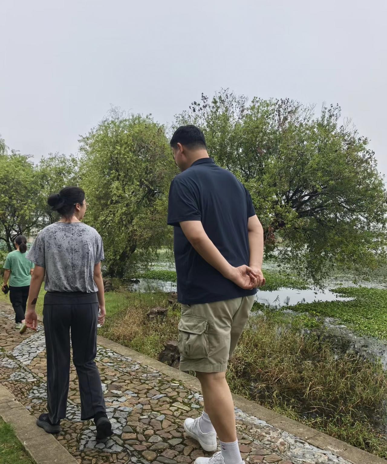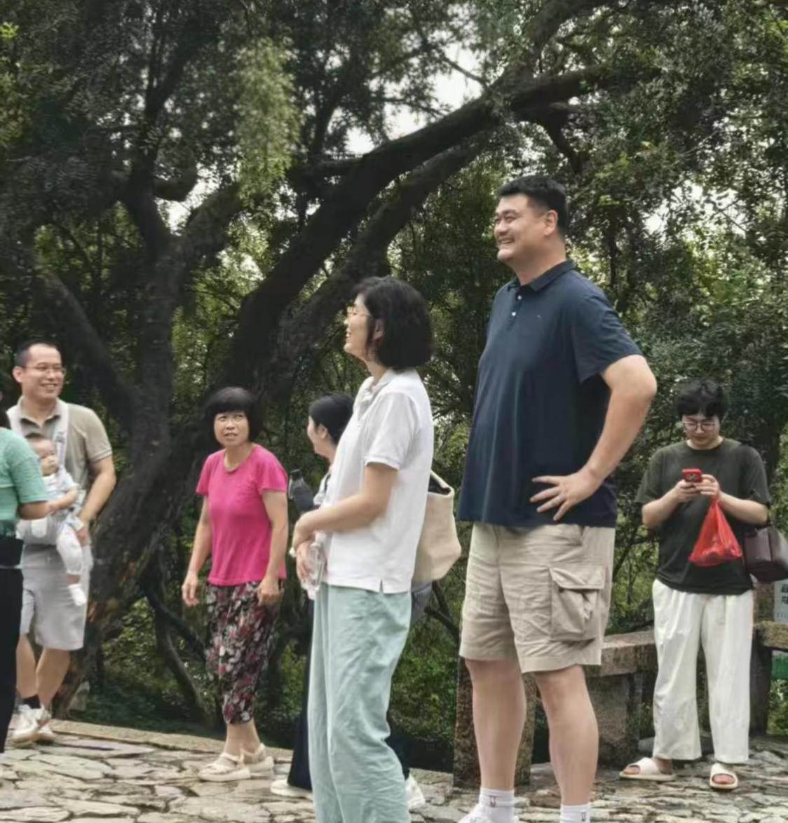 姚明和家人一起到苏州太湖西山岛旅游,他的老婆、女儿和岳母都在,一家人悠闲地欣赏风