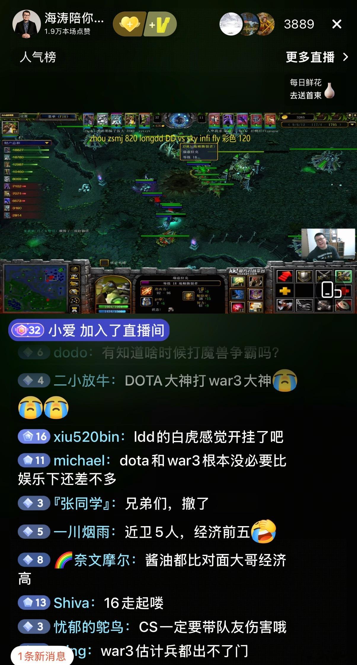 卧槽,谢斌21-0-8的宙斯狂虐对面War3队[doge],我看弹幕说龙神白虎箭太准,是不是开挂了[哈哈][哈哈]kk对战平台war3dota