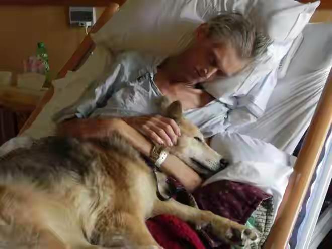 老人临死前想见自己养的狗狗,当子女把狗狗带到医院病房时,狗狗舔着老人的脸,眼神充满了深情与关切,把所有人感动泪目! 病房里很安静,只有仪器发出的轻微声响。老人躺在床上,呼吸都很费力,眼睛却一直望着门口。子女们知道老人的心思,赶紧联系邻居,把狗狗牵了过来。 狗狗一进病房,就径直跑到老人床边。它前爪搭在床沿,脑袋凑近老人,舌头一下下舔着老人的脸。老人的嘴角好像动了动,眼睛里有了点光亮。 子女们围在旁边,看着这一幕,眼泪忍不住掉下来。有个女儿伸手想去摸摸狗狗,又怕打扰了它和老人。狗狗就那样一直陪着,眼神里满是不舍,好像知道要发生什么。 过了一会儿,老人的手慢慢抬起来,轻轻放在狗狗的头上。狗狗呜咽了一声,把头往老人手里蹭。周围的护士看到了,也悄悄红了眼眶,悄悄退了出去,想给他们留点时间。 最后,老人的手垂了下去,眼睛也慢慢闭上了。狗狗还是待在床边,安静地趴着,偶尔抬头看看老人,又低下头,像是在和老人告别。