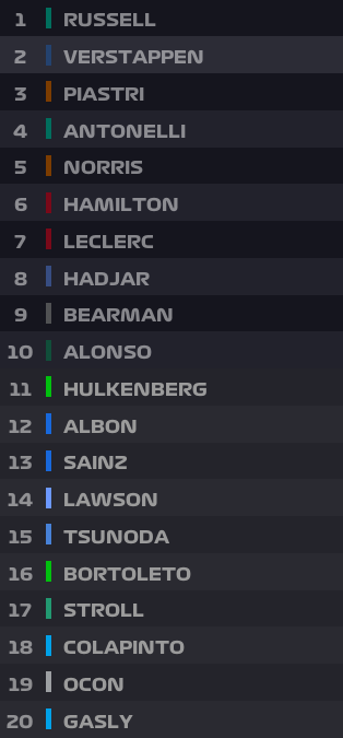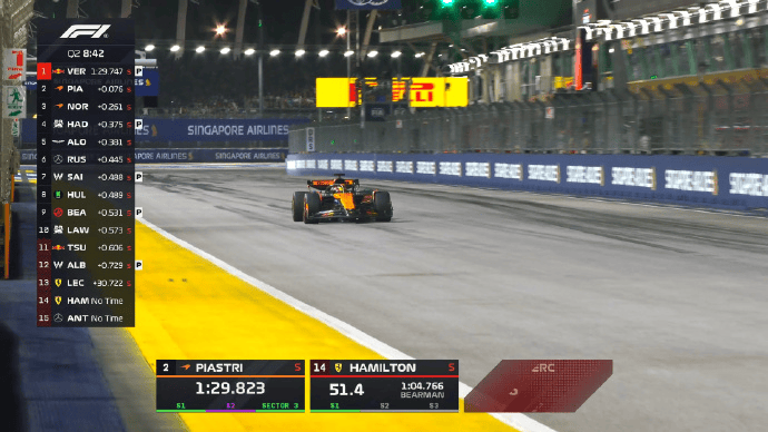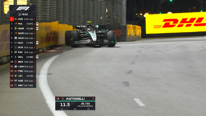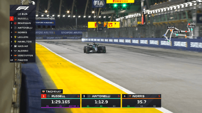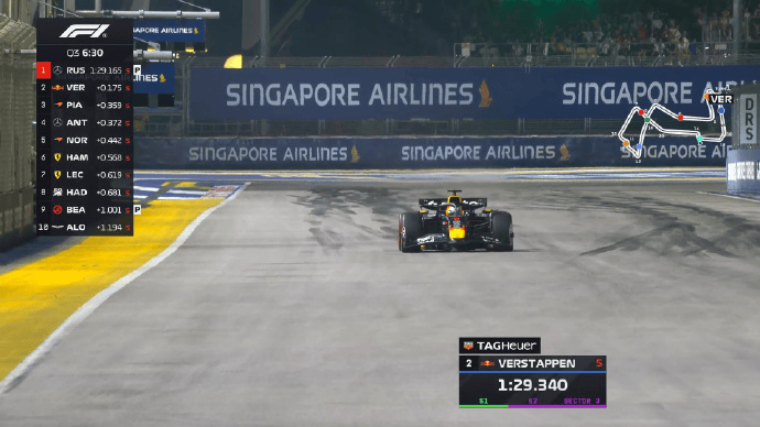 F1新加坡站排位赛:拉塞尔杆位,维斯塔潘P2&皮亚斯特里P3